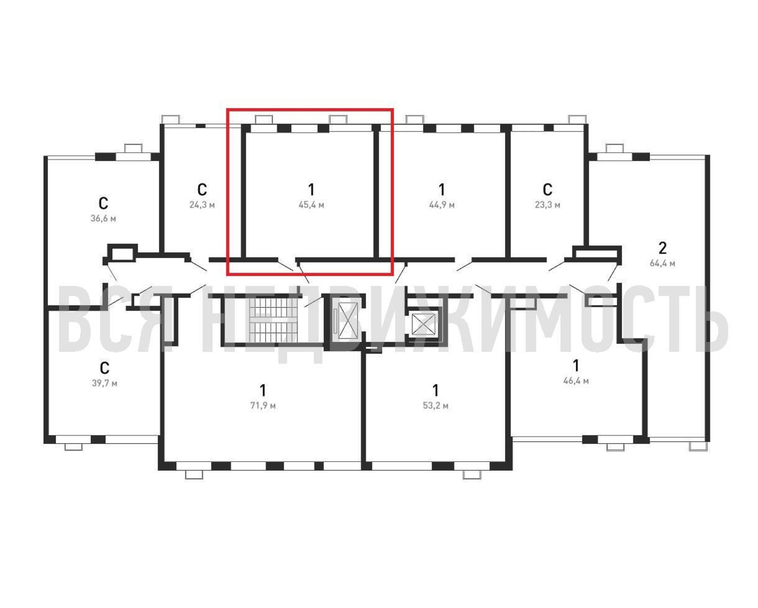 1-комнатная квартира, 45.40 м² 2/15 этаж ID объекта 100079644