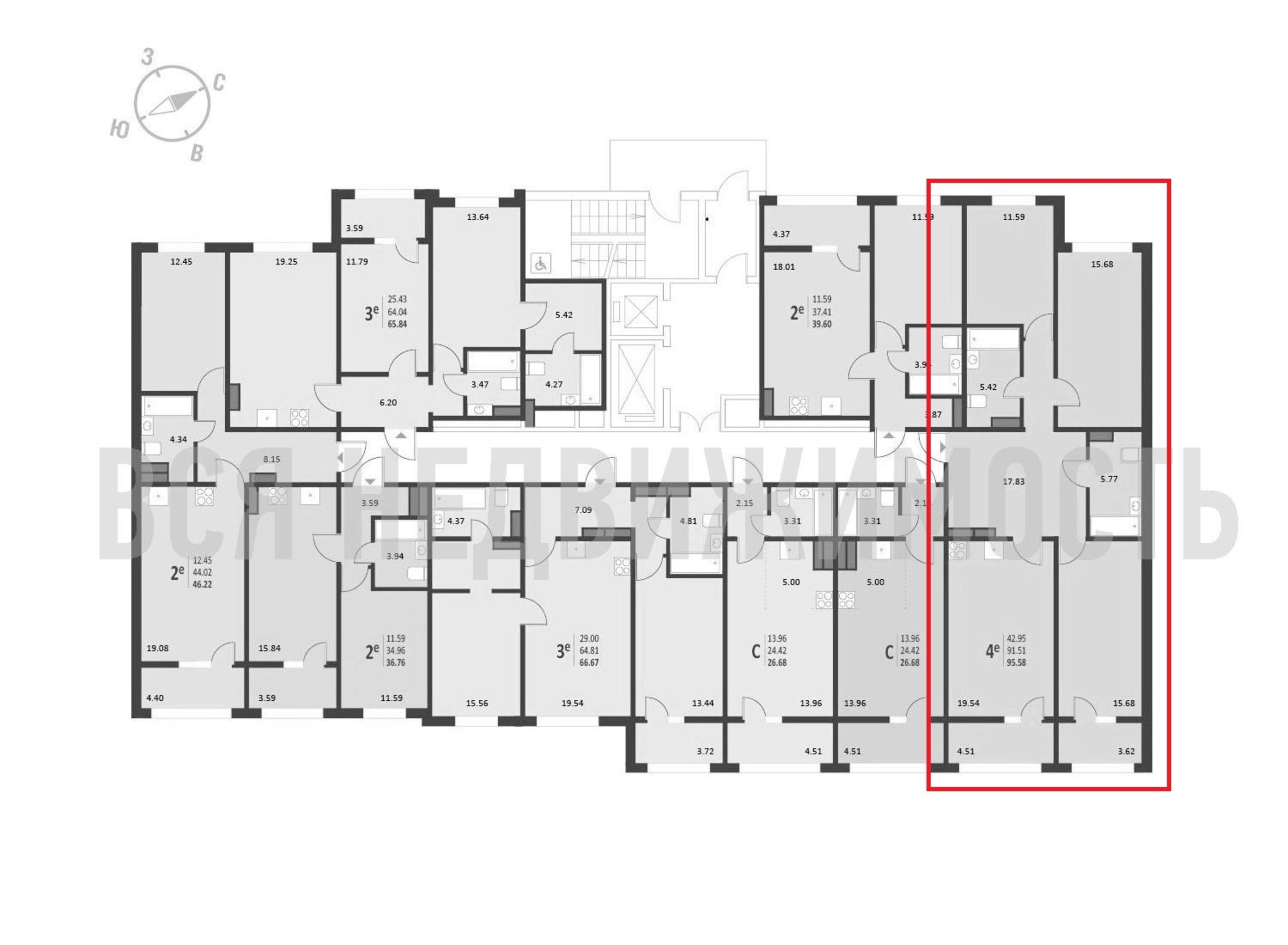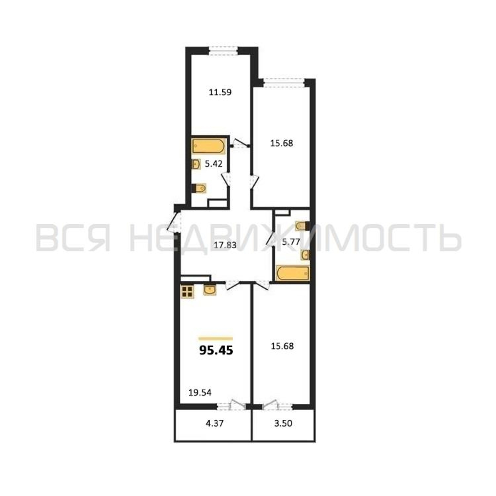 3-комнатная квартира, 95.45 м² 13/16 этаж ID объекта 100080280