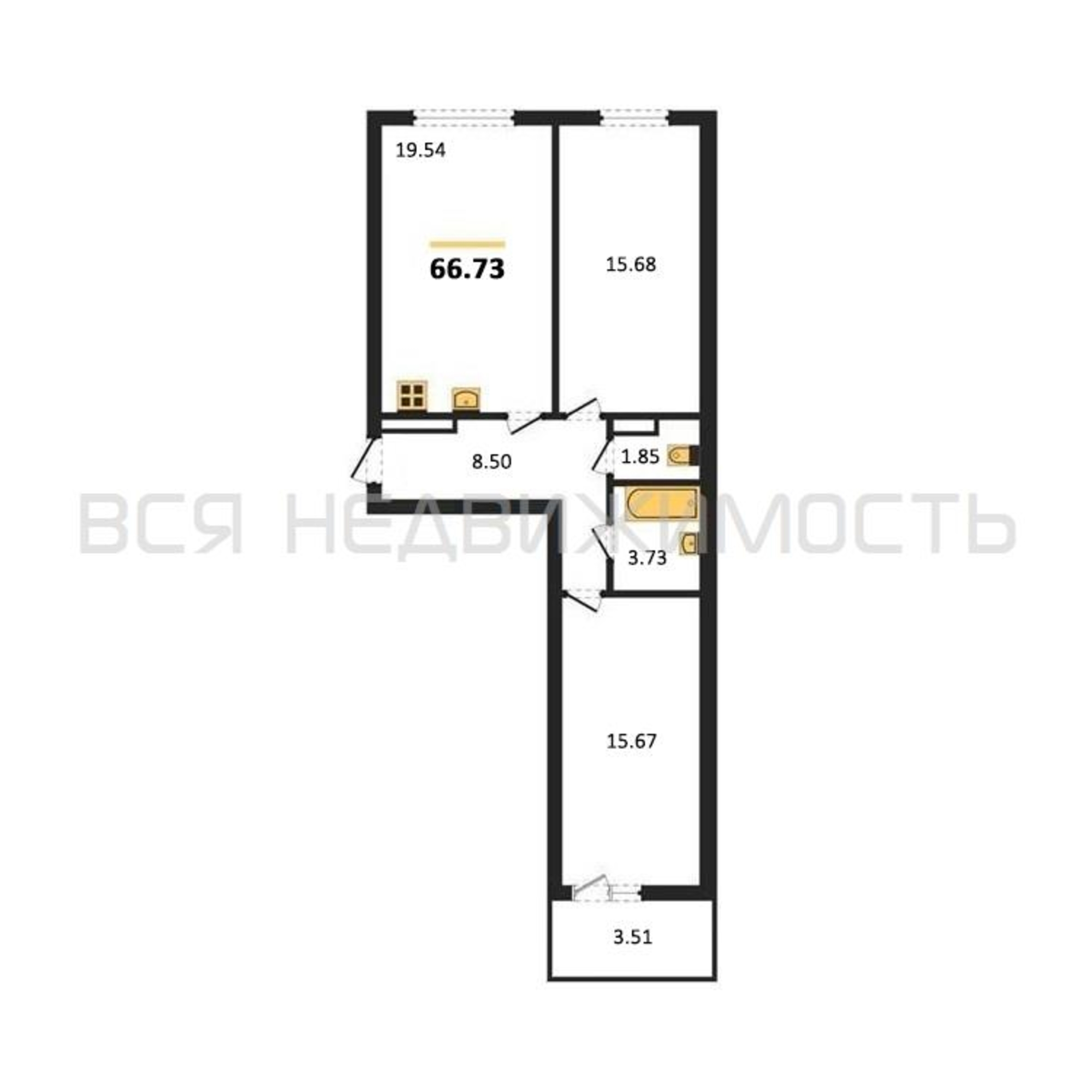 2-комнатная квартира, 66.73 м² 13/14 этаж ID объекта 100080283