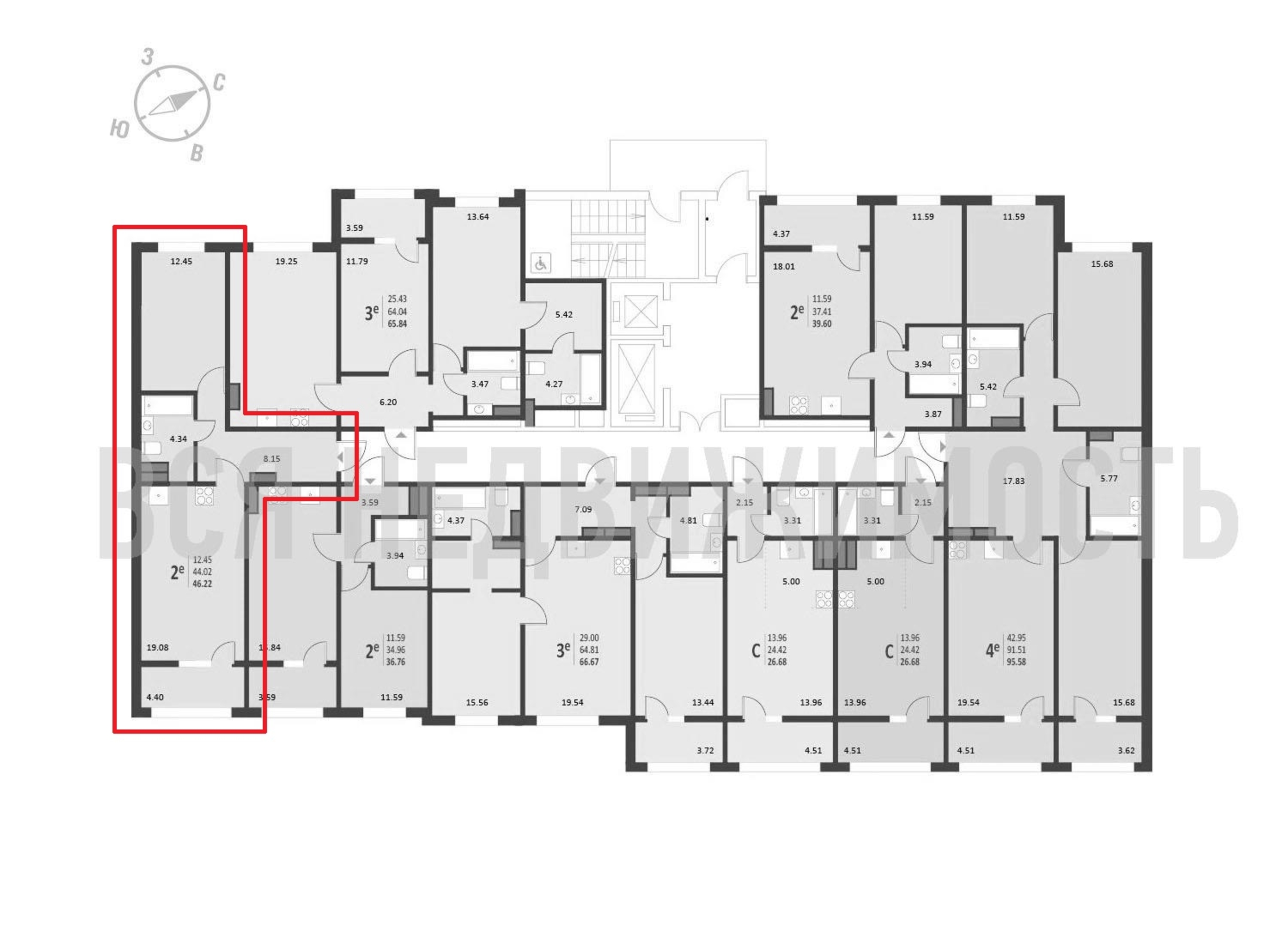 1-комнатная квартира, 46.22 м² 9/16 этаж ID объекта 100080468