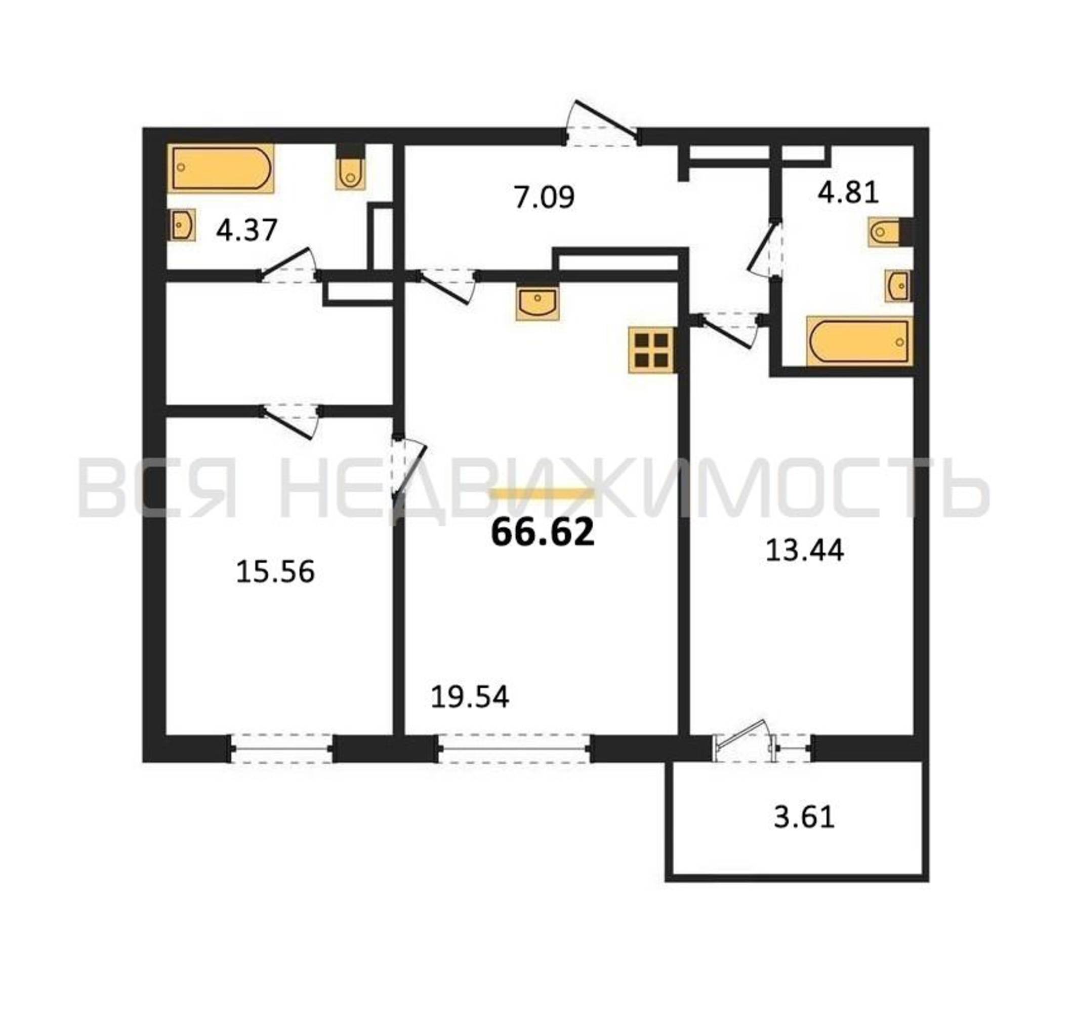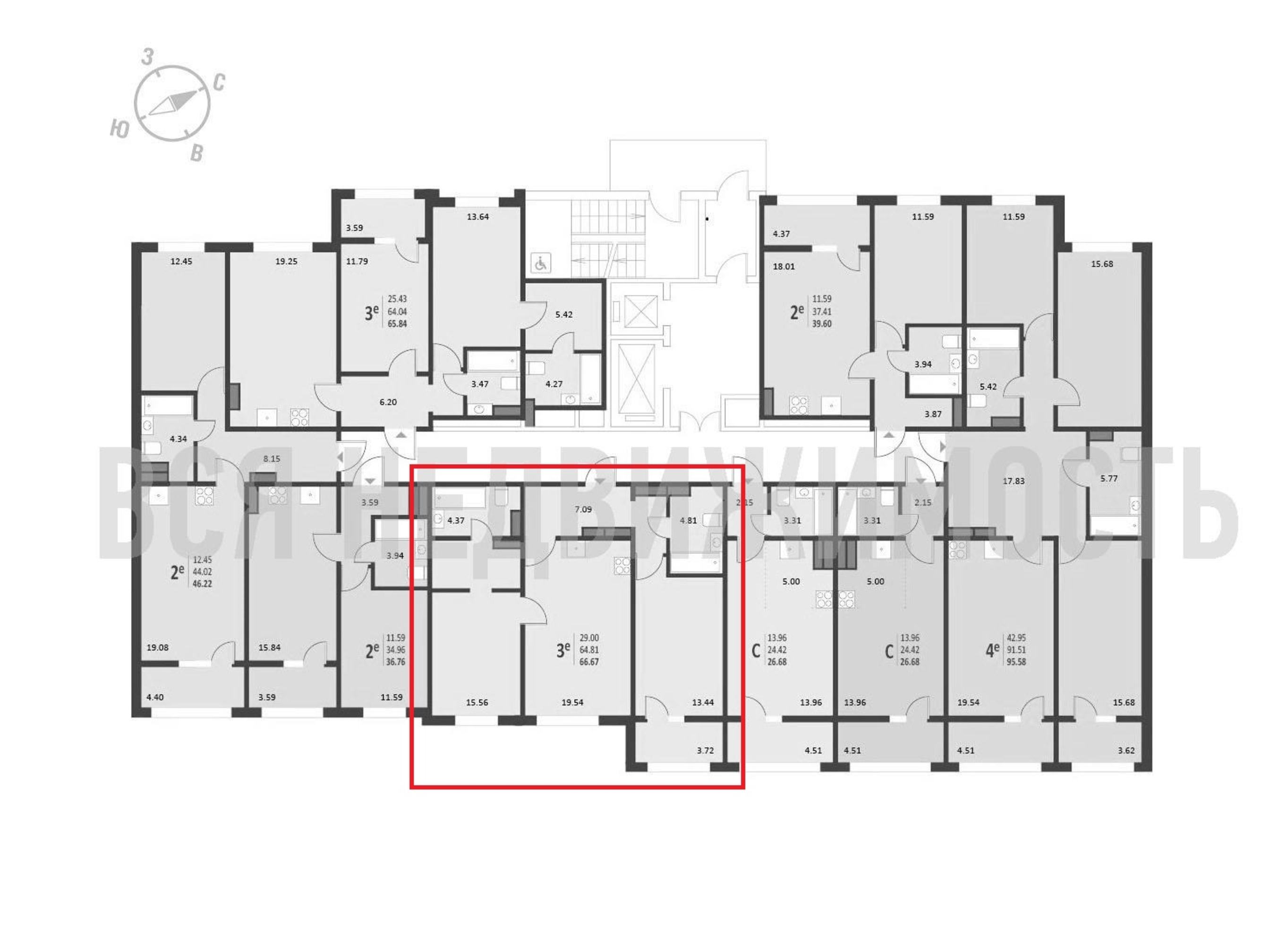 2-комнатная квартира, 66.62 м² 12/16 этаж ID объекта 100080478