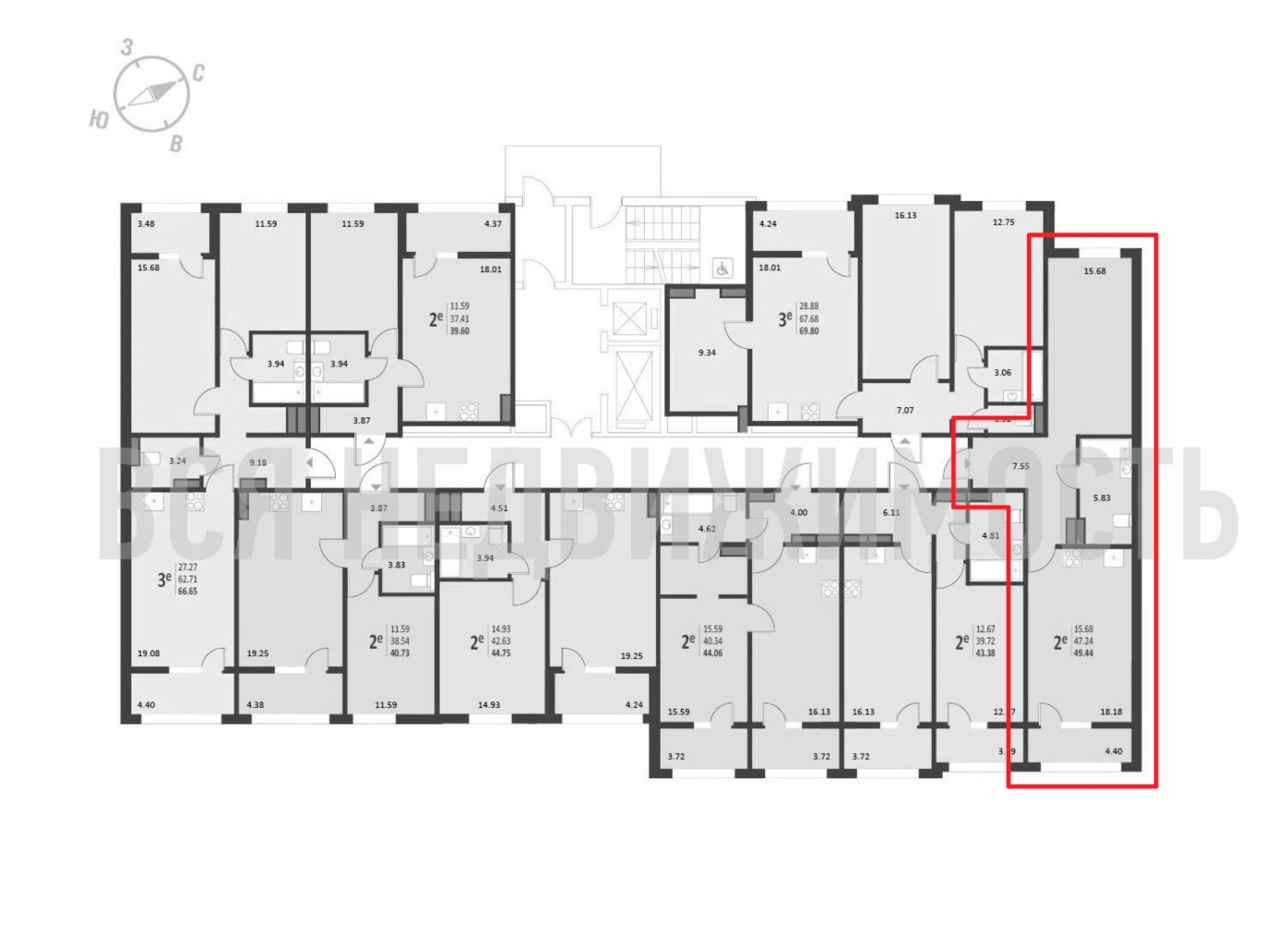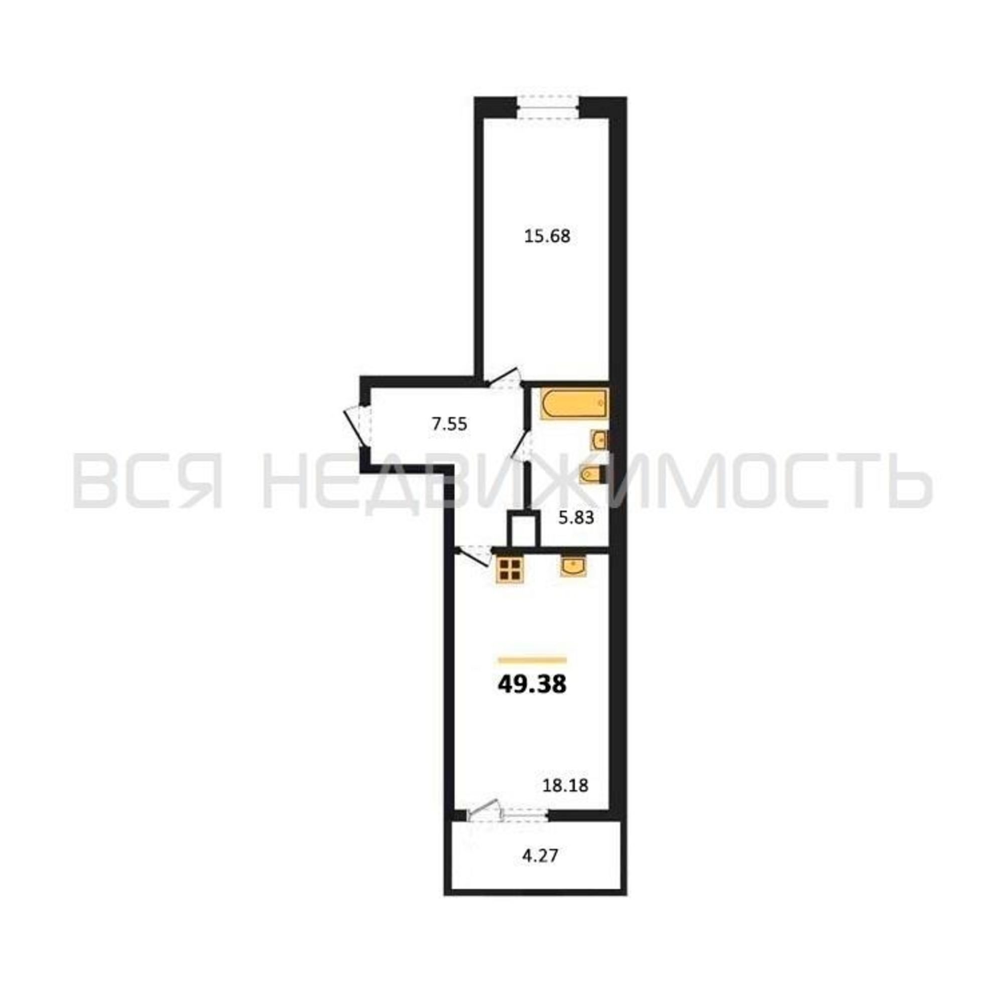 1-комнатная квартира, 49.38 м² 2/12 этаж ID объекта 100080502