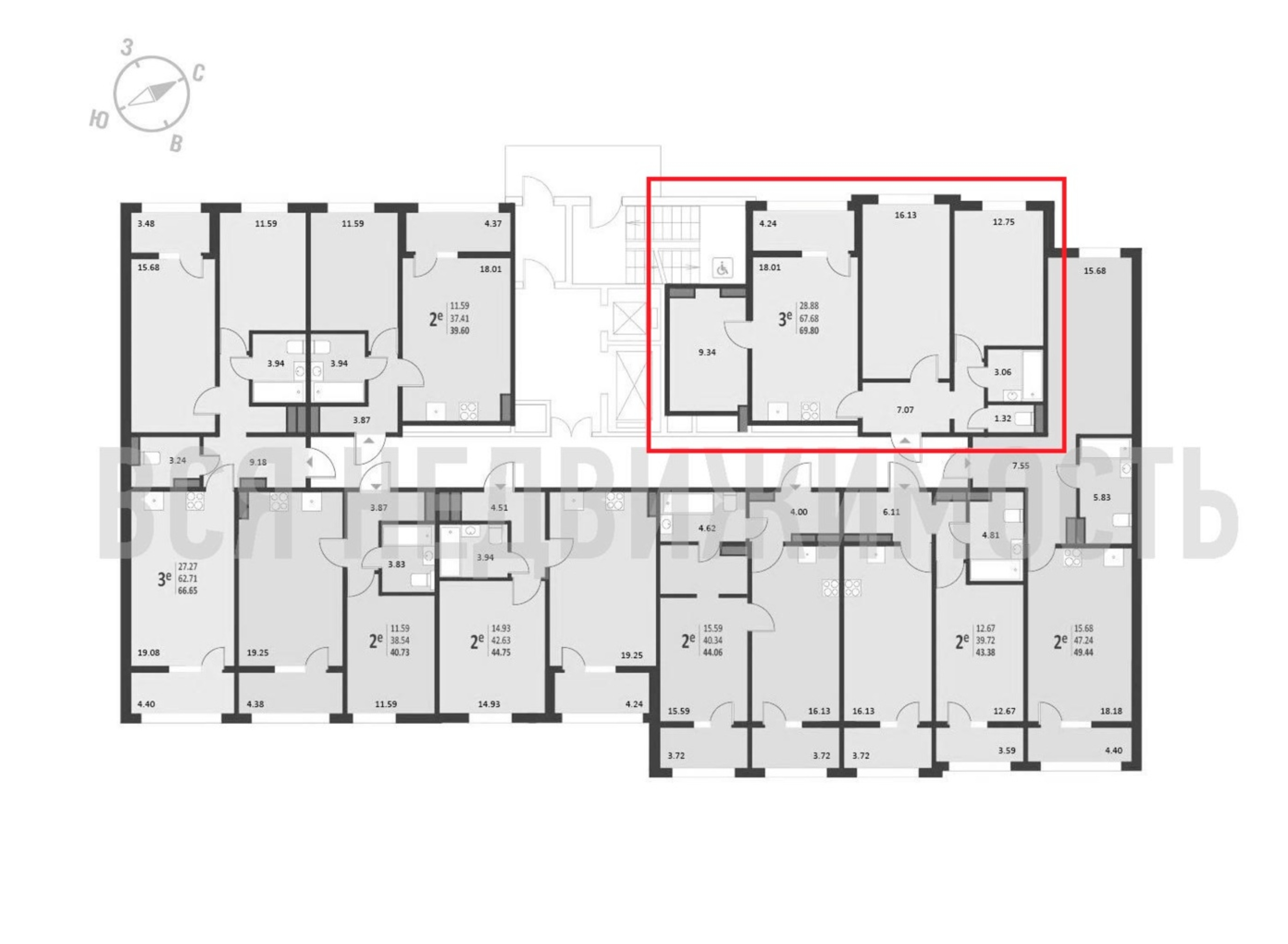 2-комнатная квартира, 69.69 м² 8/12 этаж ID объекта 100080534