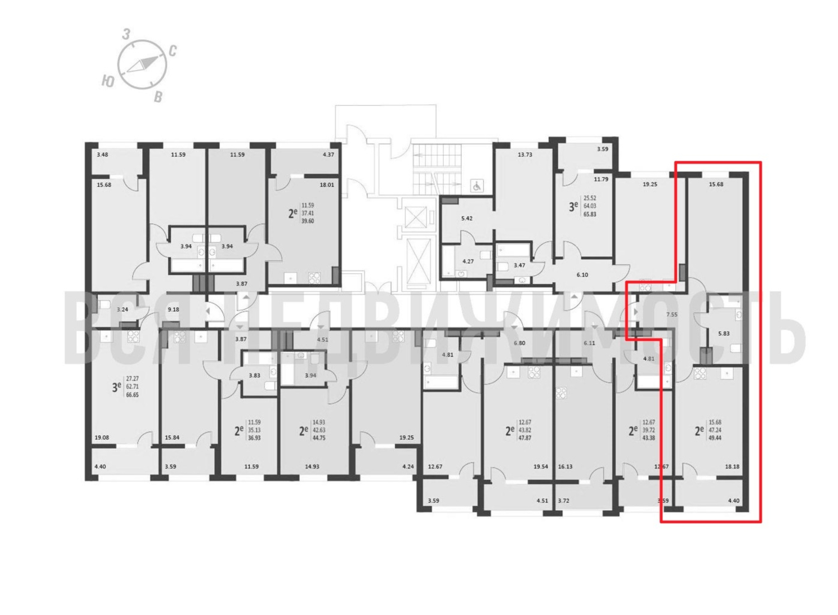 1-комнатная квартира, 49.38 м² 17/18 этаж ID объекта 100080646