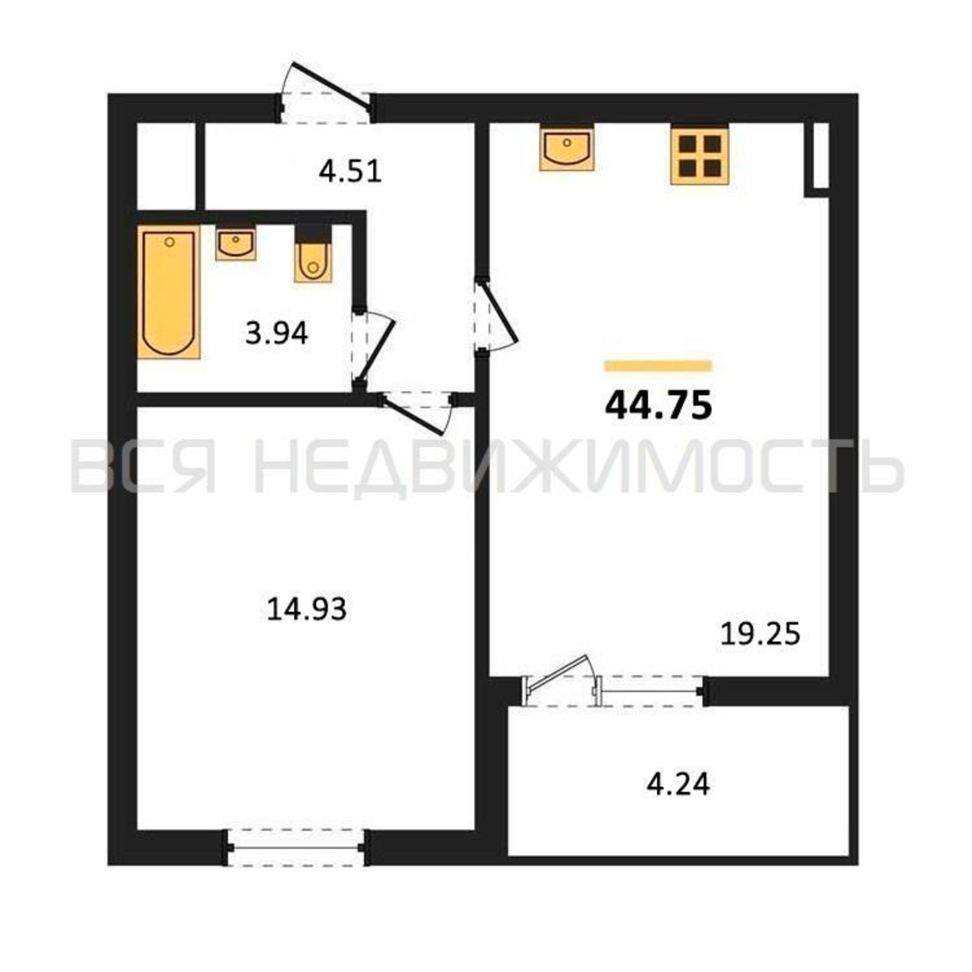 1-комнатная квартира, 44.75 м² 18/18 этаж ID объекта 100080657