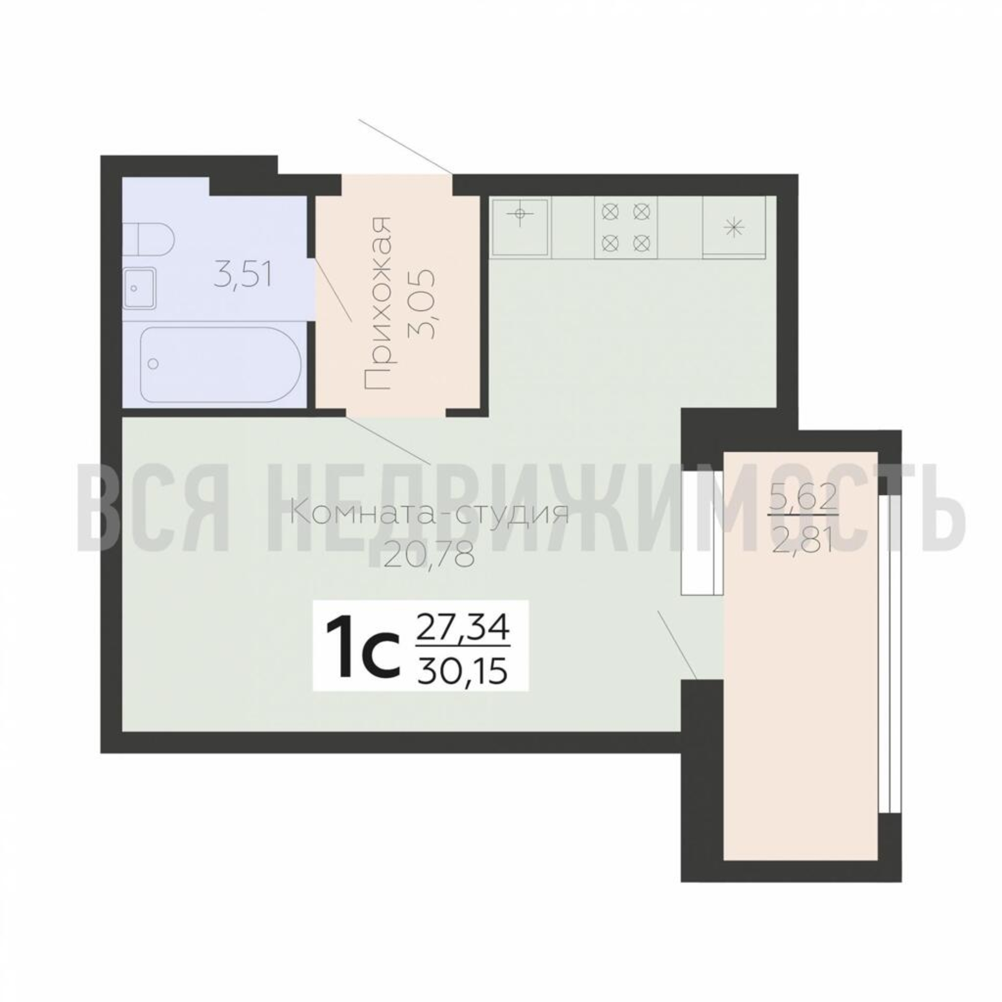 Квартиры-студии, 30.15 м² 5/13 этаж ID объекта 100080784