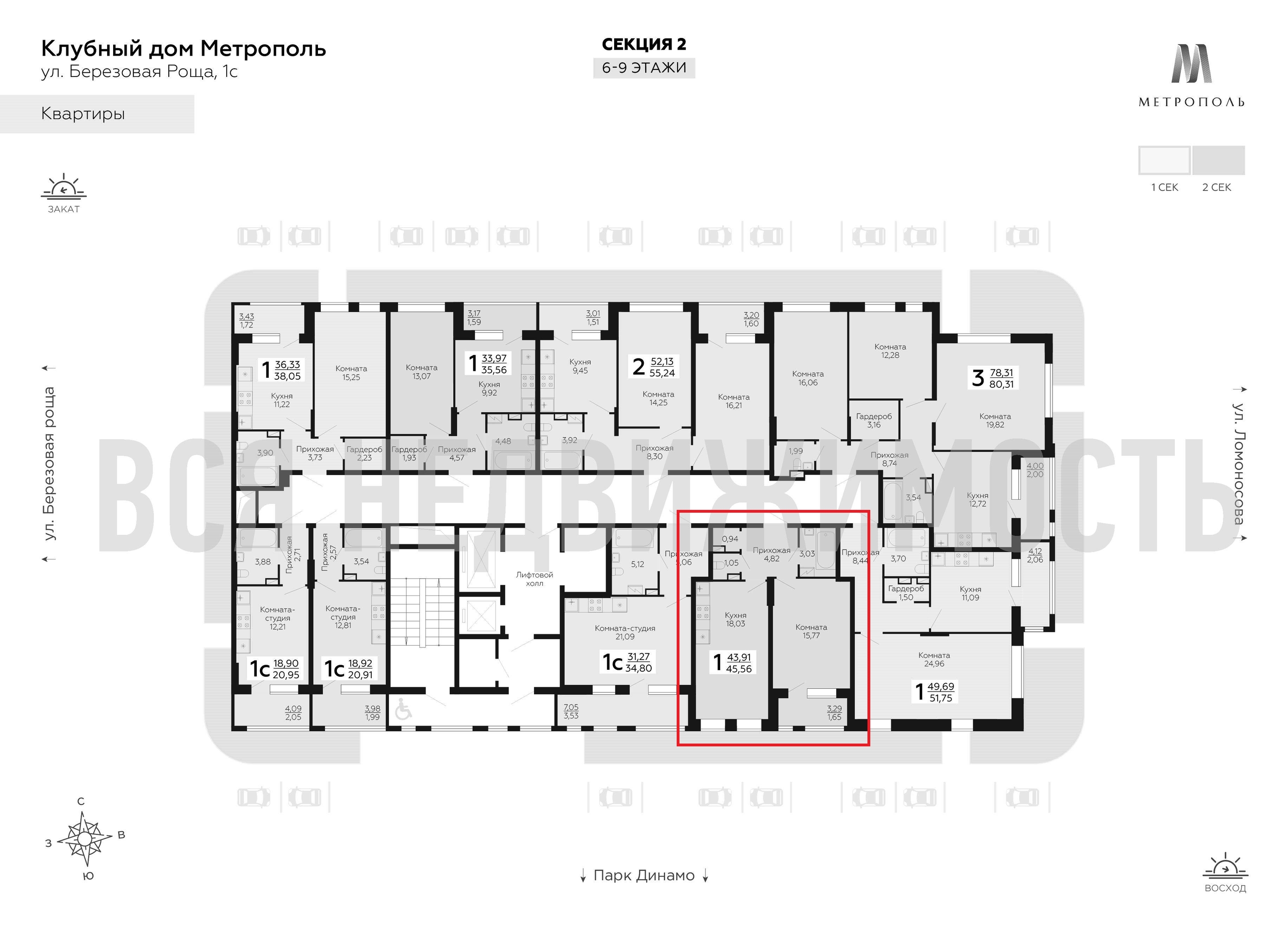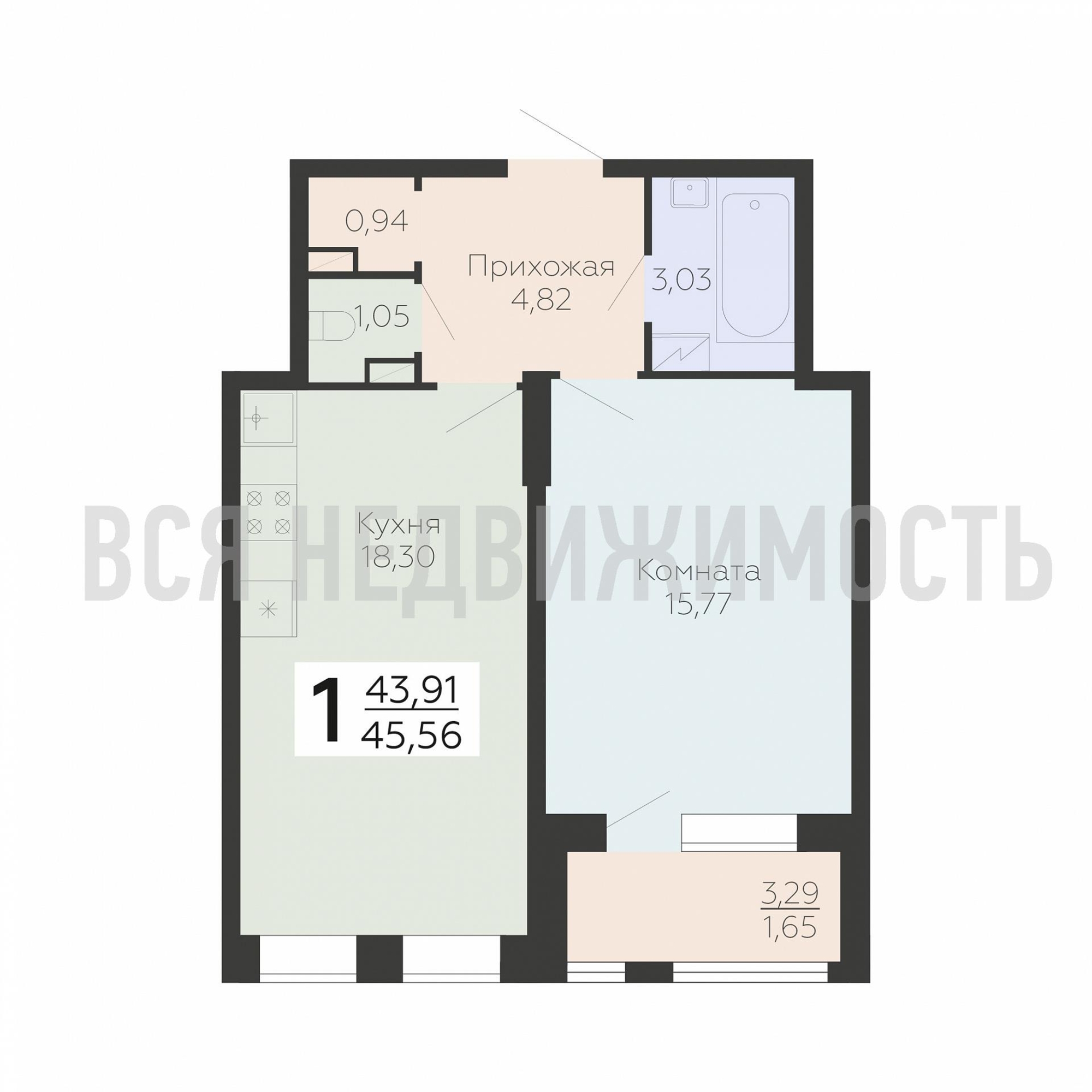 1-комнатная квартира, 45.56 м² 6/24 этаж ID объекта 100080904