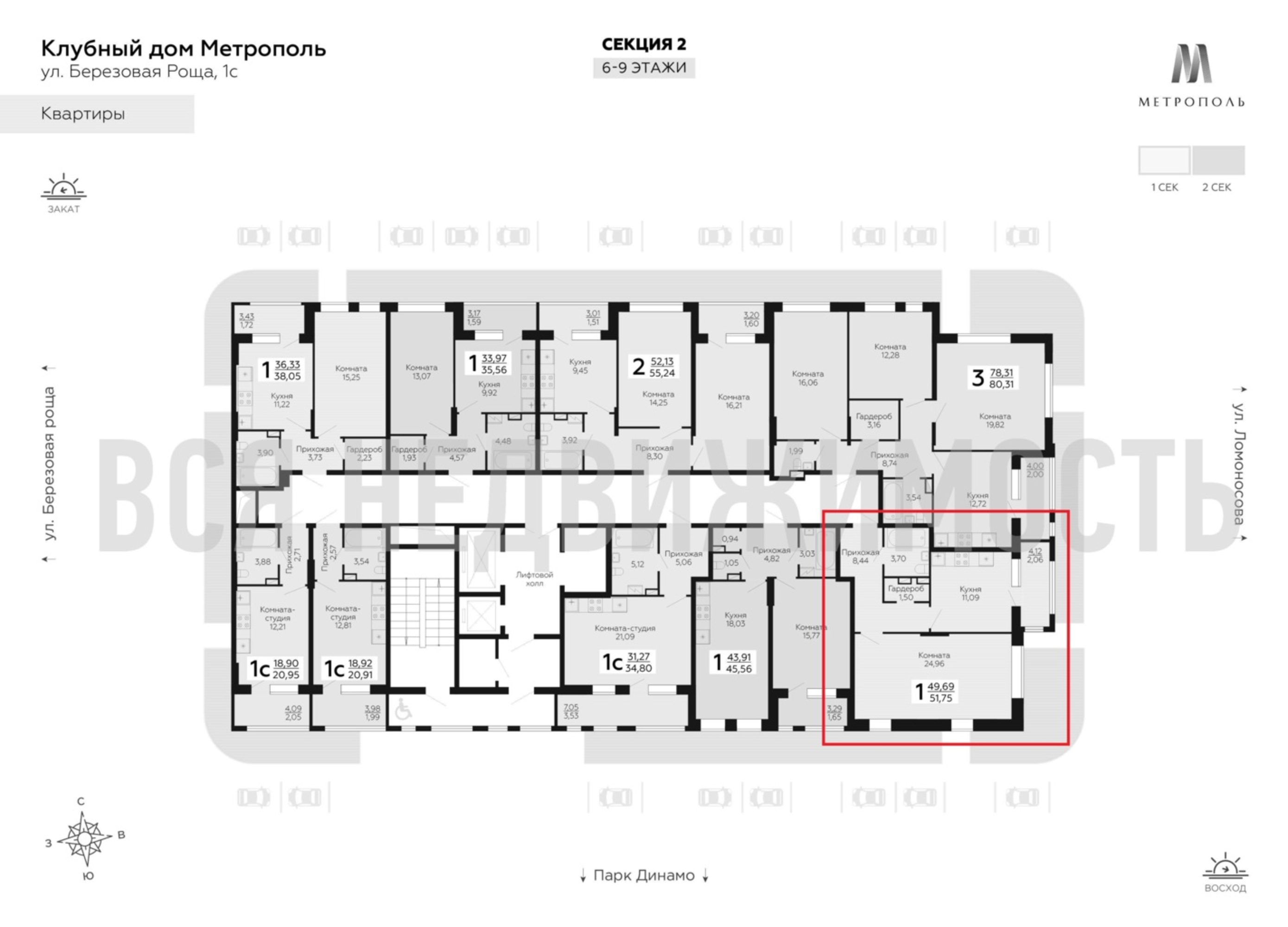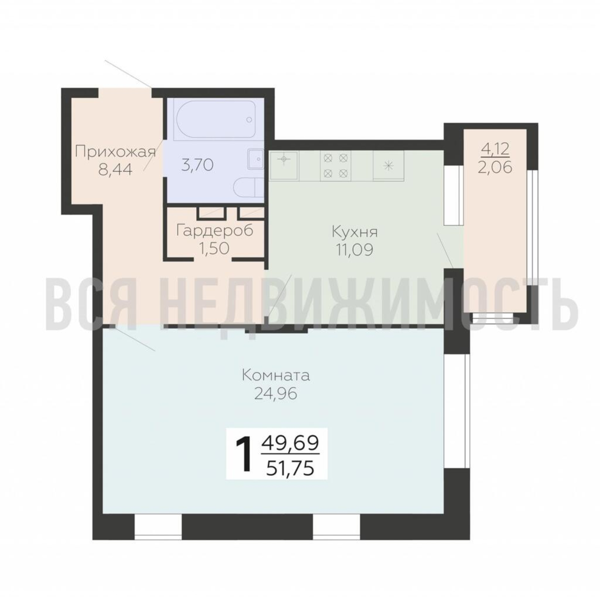 1-комнатная квартира, 51.75 м² 8/24 этаж ID объекта 100080921