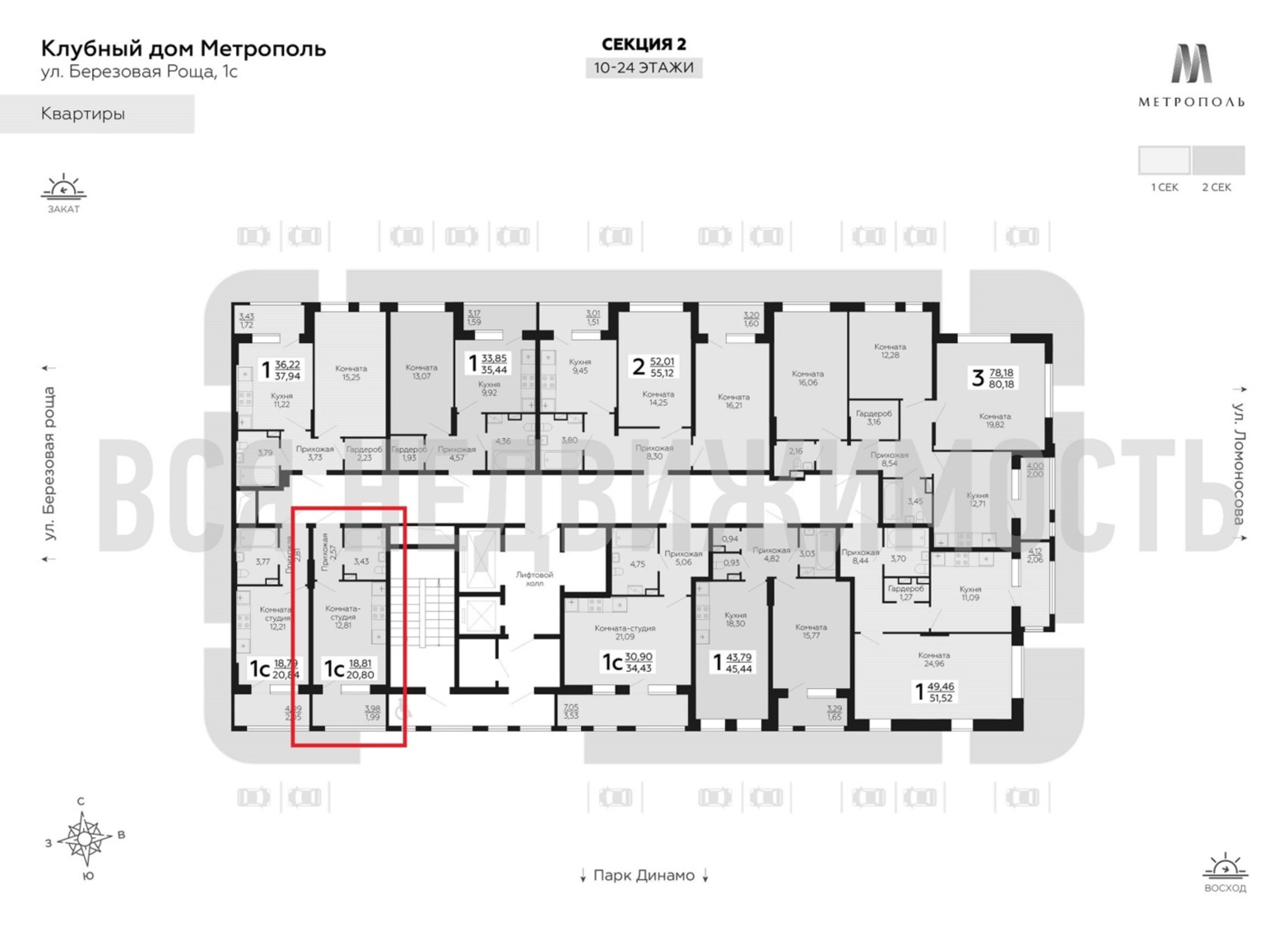 Квартиры-студии, 20.80 м² 11/24 этаж ID объекта 100080942