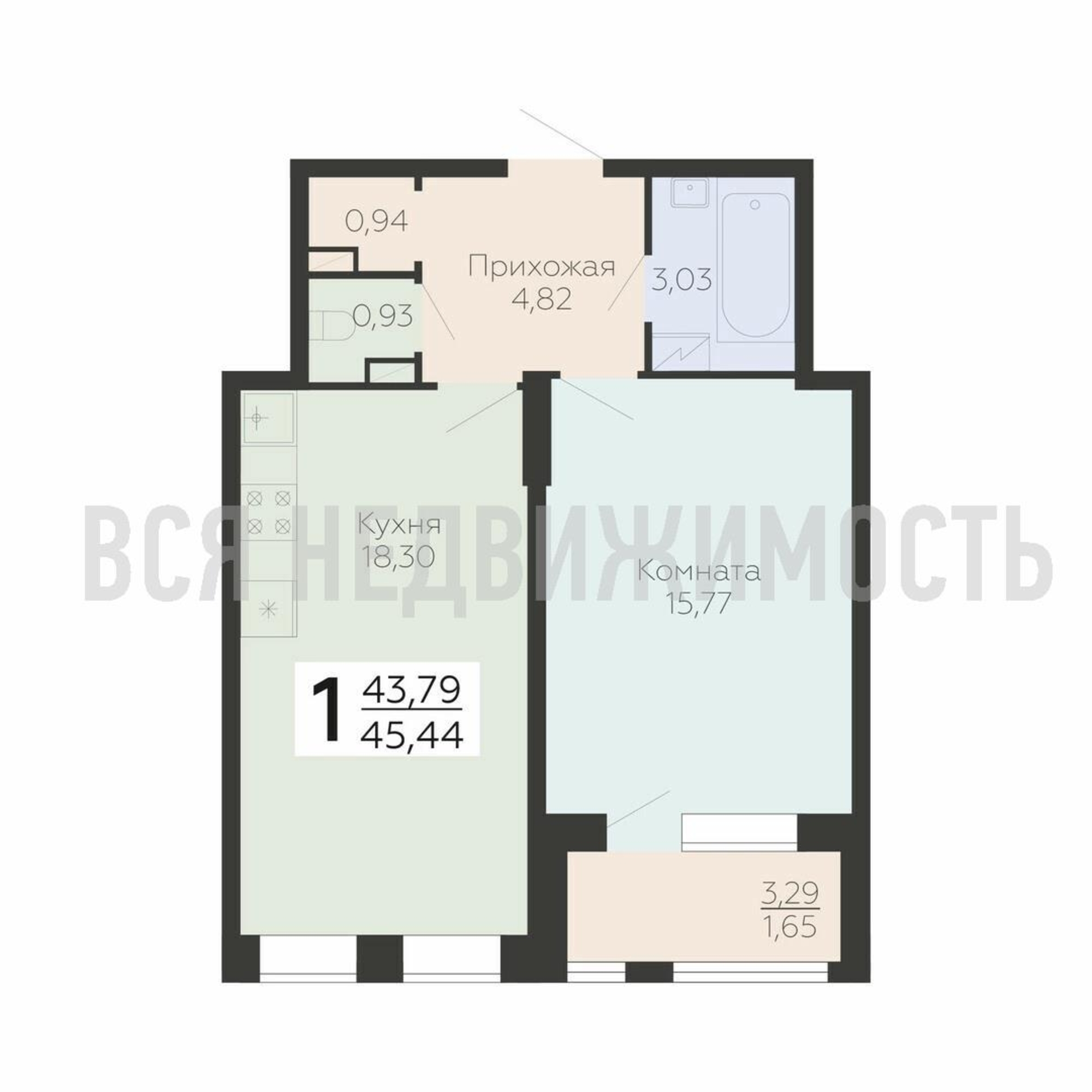 1-комнатная квартира, 45.44 м² 11/24 этаж ID объекта 100080949
