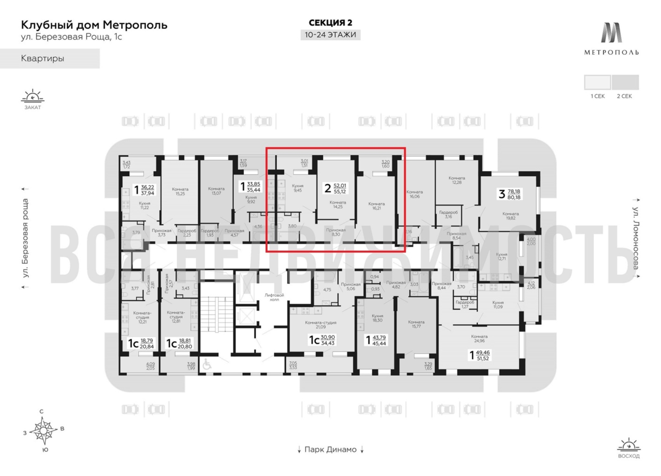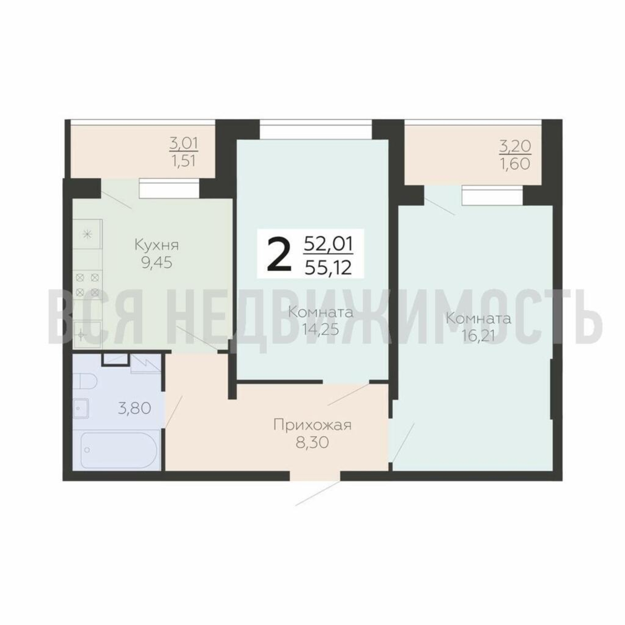2-комнатная квартира, 55.12 м² 18/24 этаж ID объекта 100081009