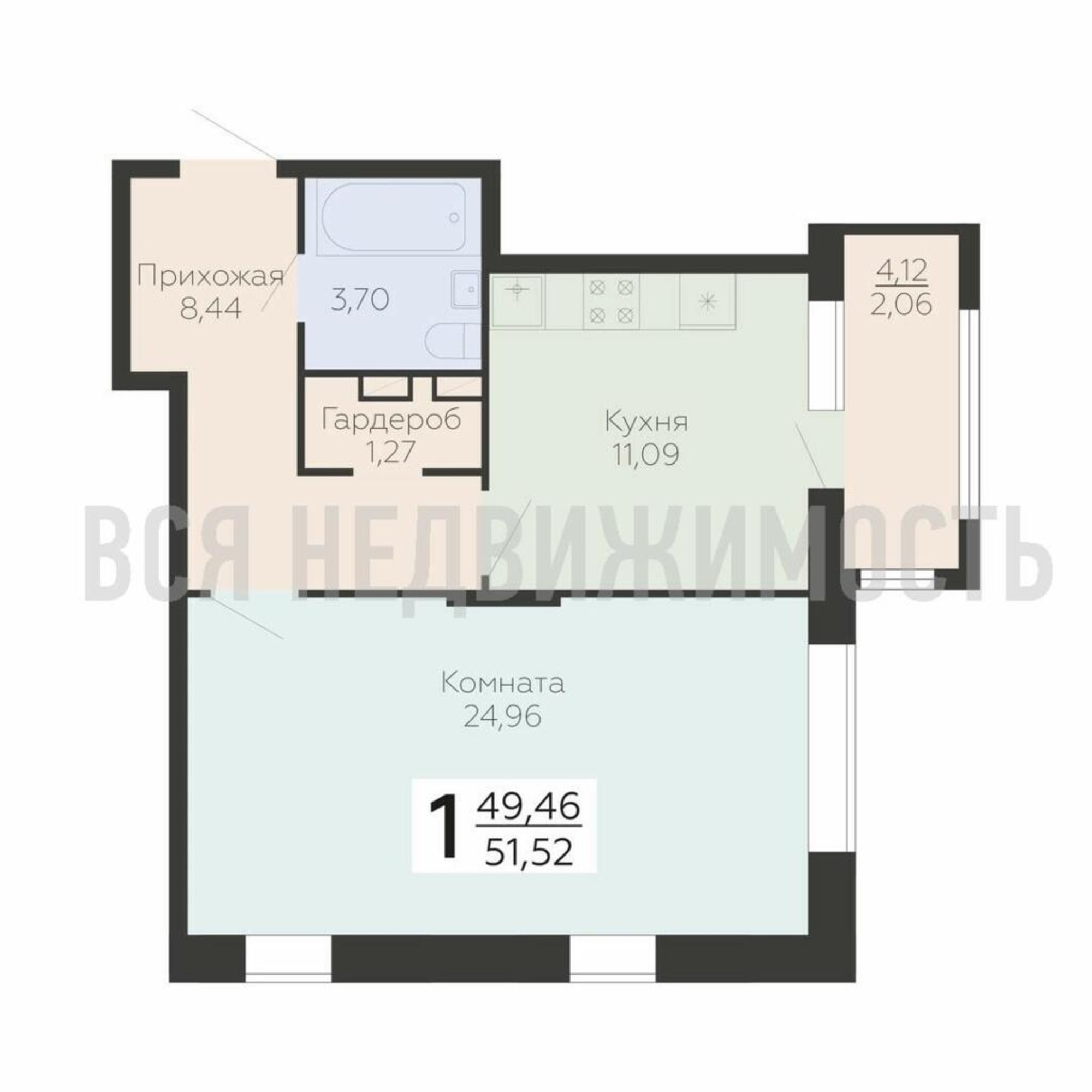 1-комнатная квартира, 51.52 м² 20/24 этаж ID объекта 100081029