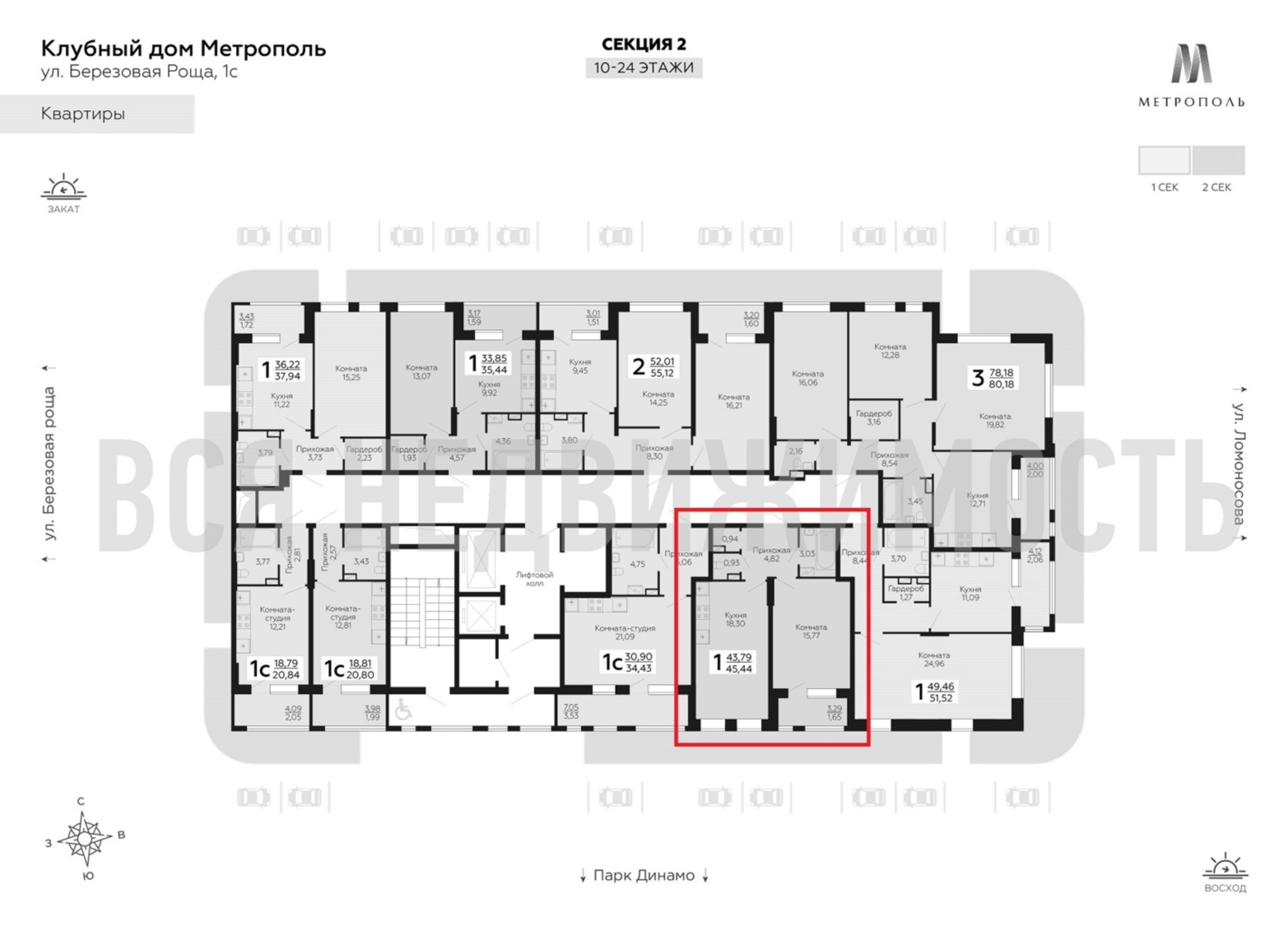 1-комнатная квартира, 45.44 м² 20/24 этаж ID объекта 100081030