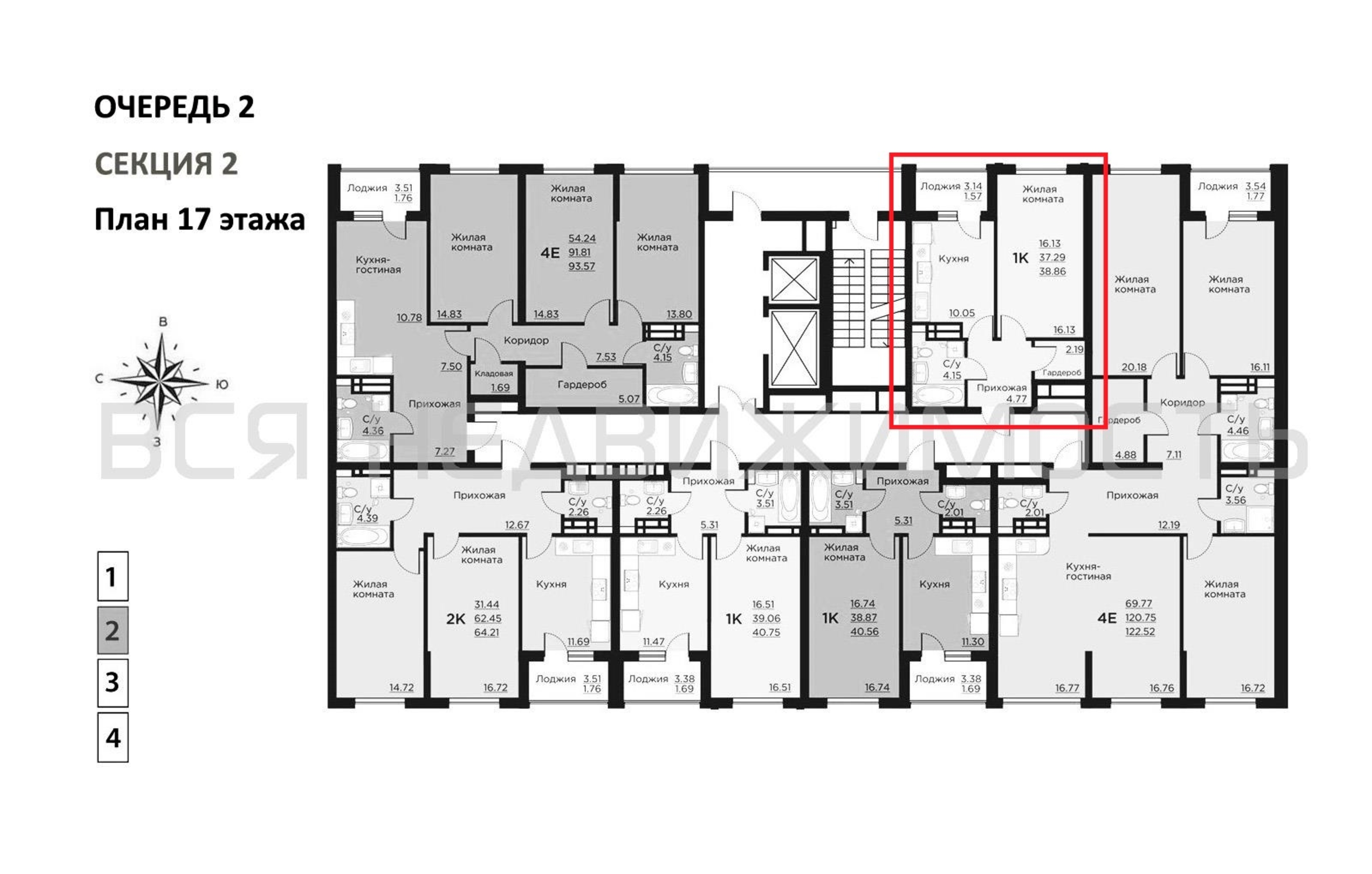1-комнатная квартира, 38.86 м² 17/18 этаж ID объекта 100082470