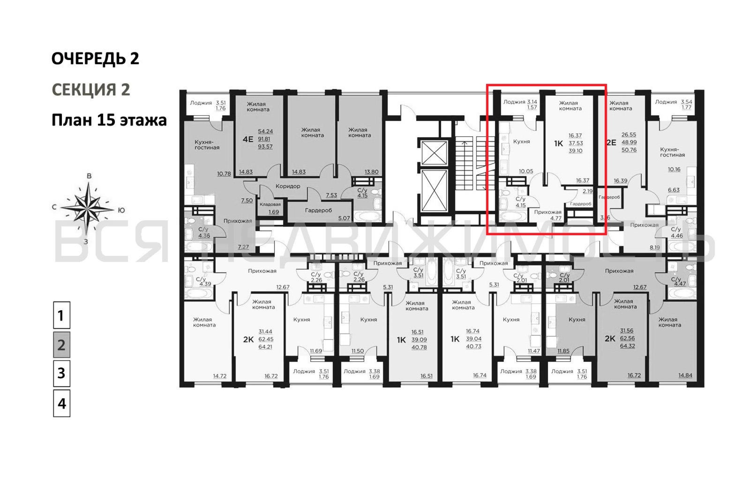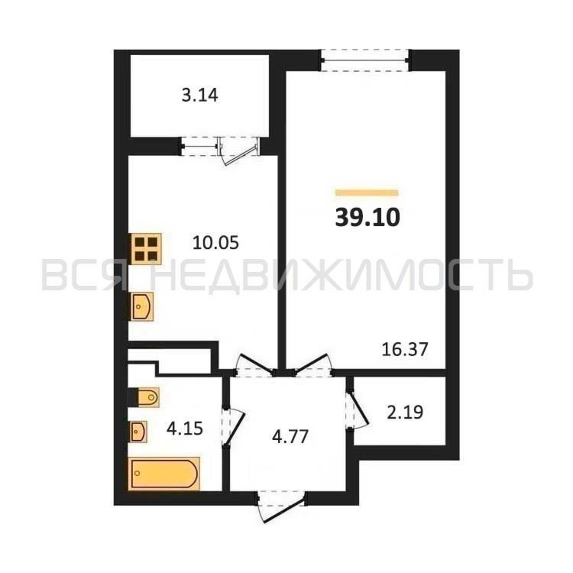 1-комнатная квартира, 39.10 м² 15/18 этаж ID объекта 100082493