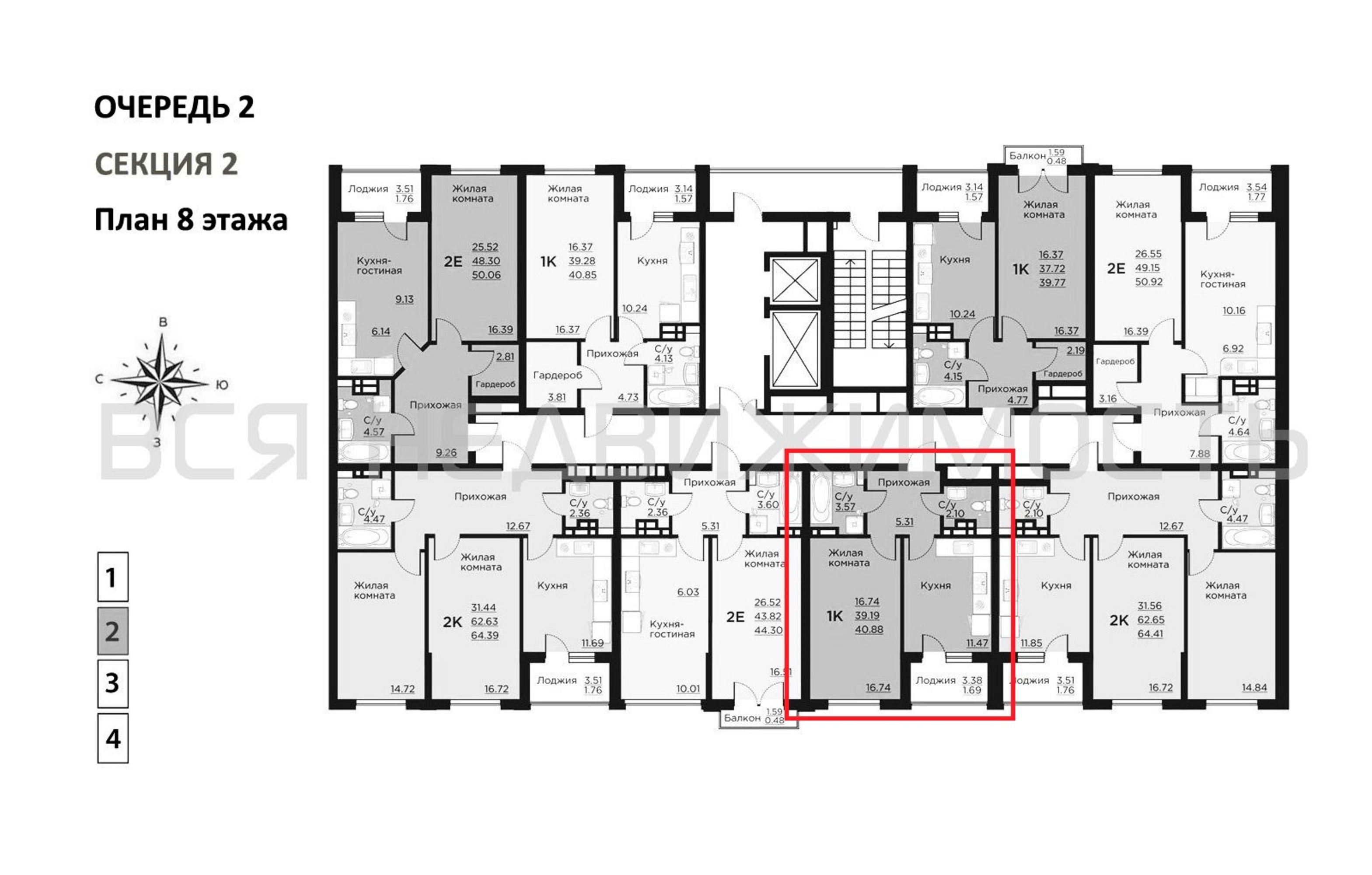 1-комнатная квартира, 40.89 м² 8/18 этаж ID объекта 100082535