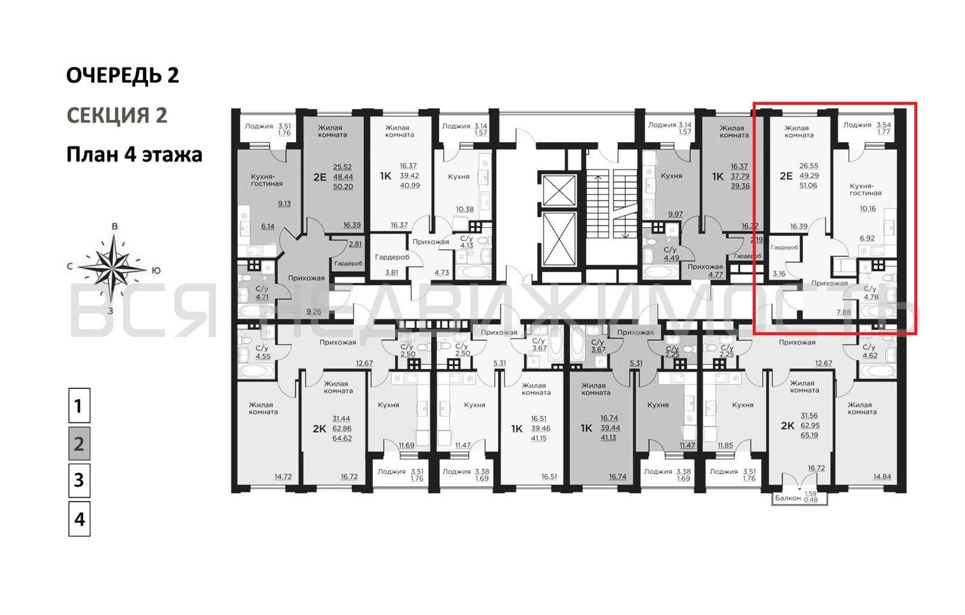 1-комнатная квартира, 51.06 м² 4/18 этаж ID объекта 100082561