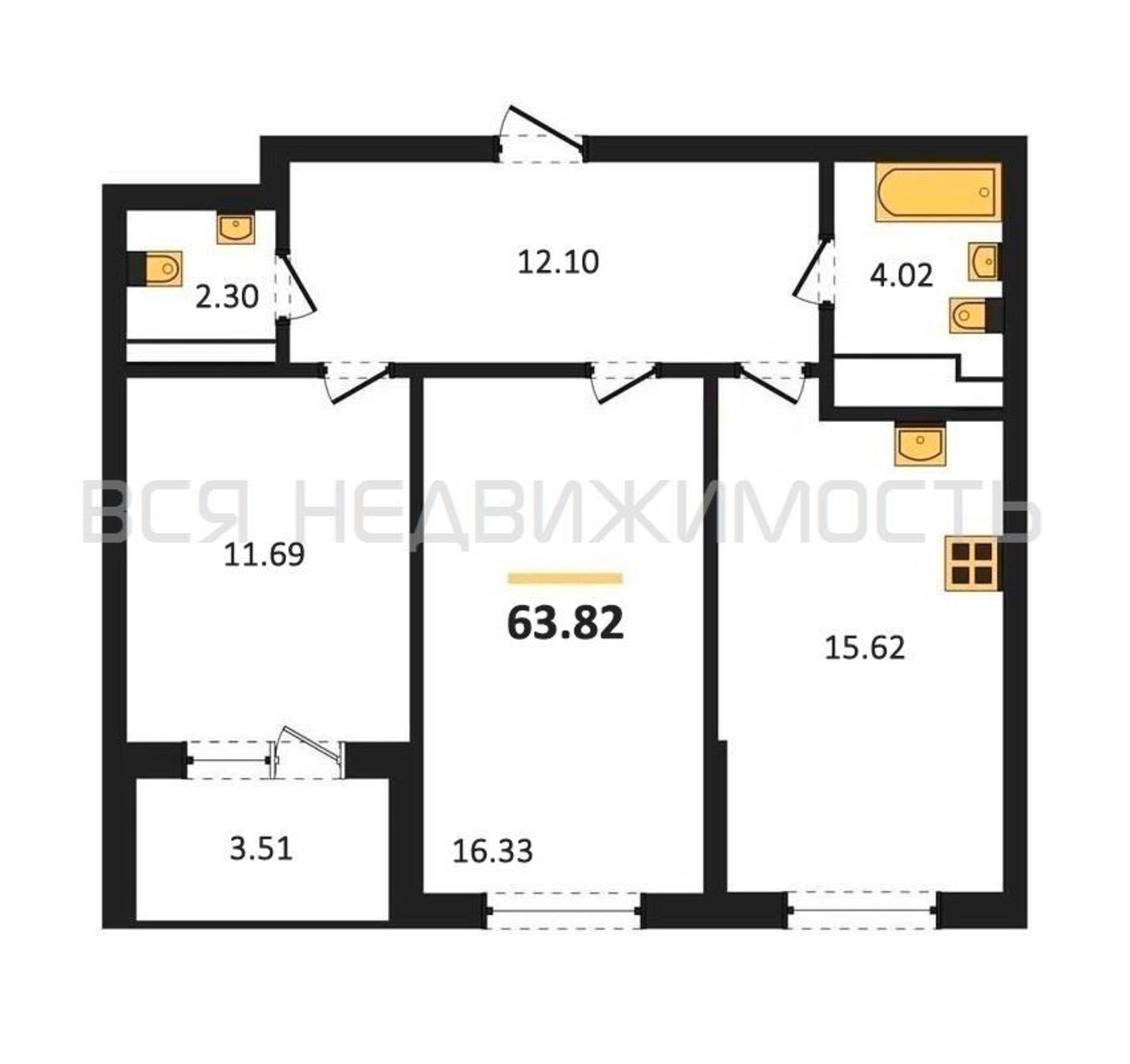 2-комнатная квартира, 63.82 м² 17/18 этаж ID объекта 100082600