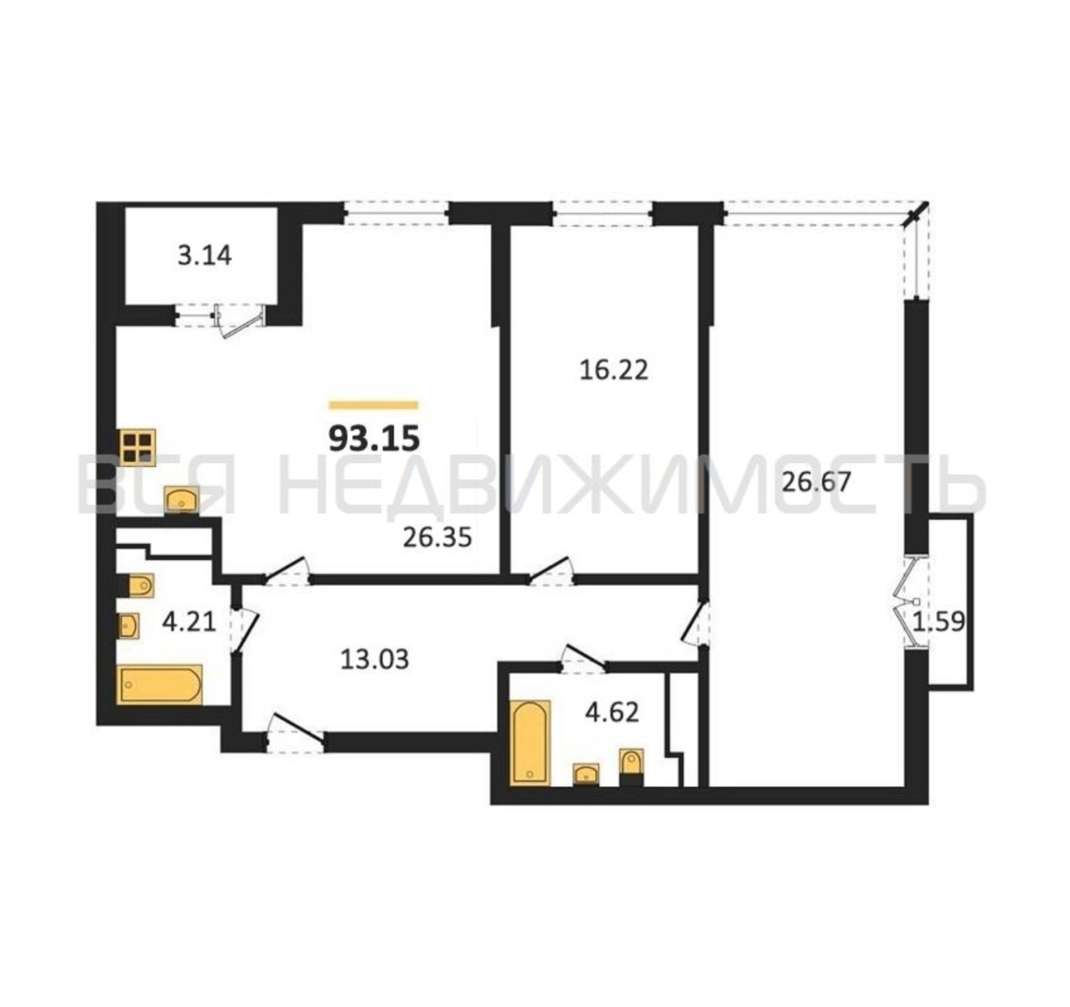 Строительная площадь93.15 м²