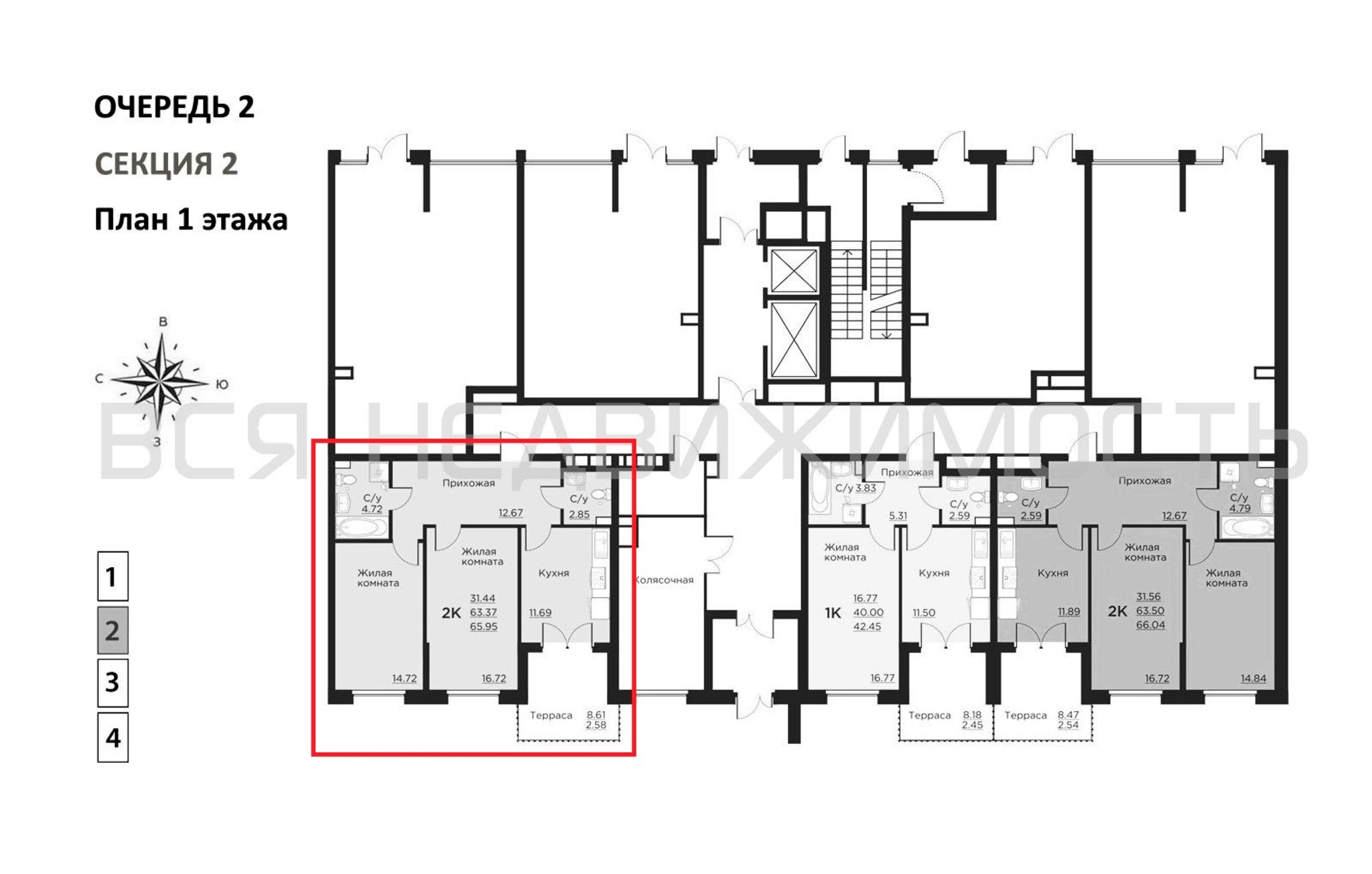 2-комнатная квартира, 65.95 м² 1/18 этаж ID объекта 100082832