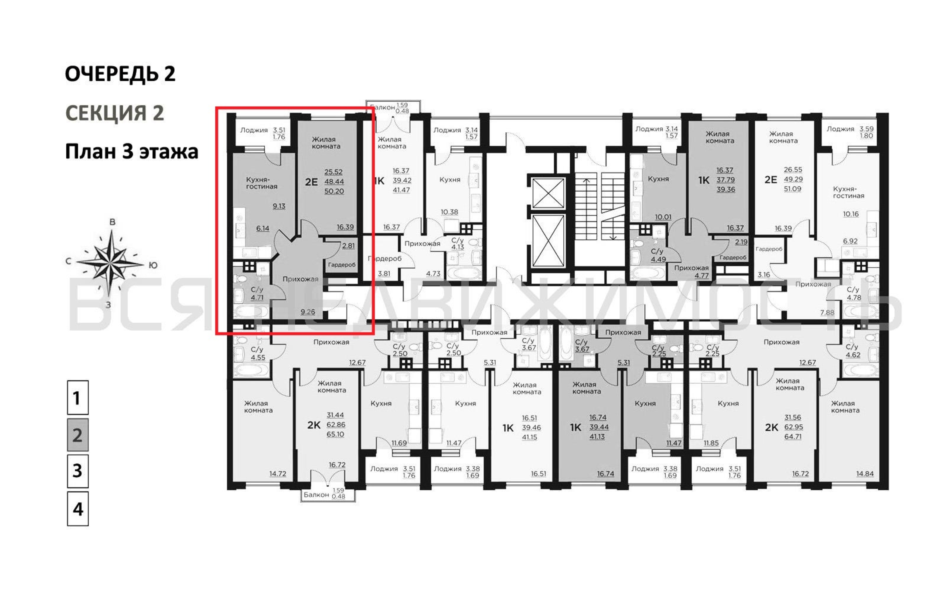 1-комнатная квартира, 50.20 м² 3/18 этаж ID объекта 100082839