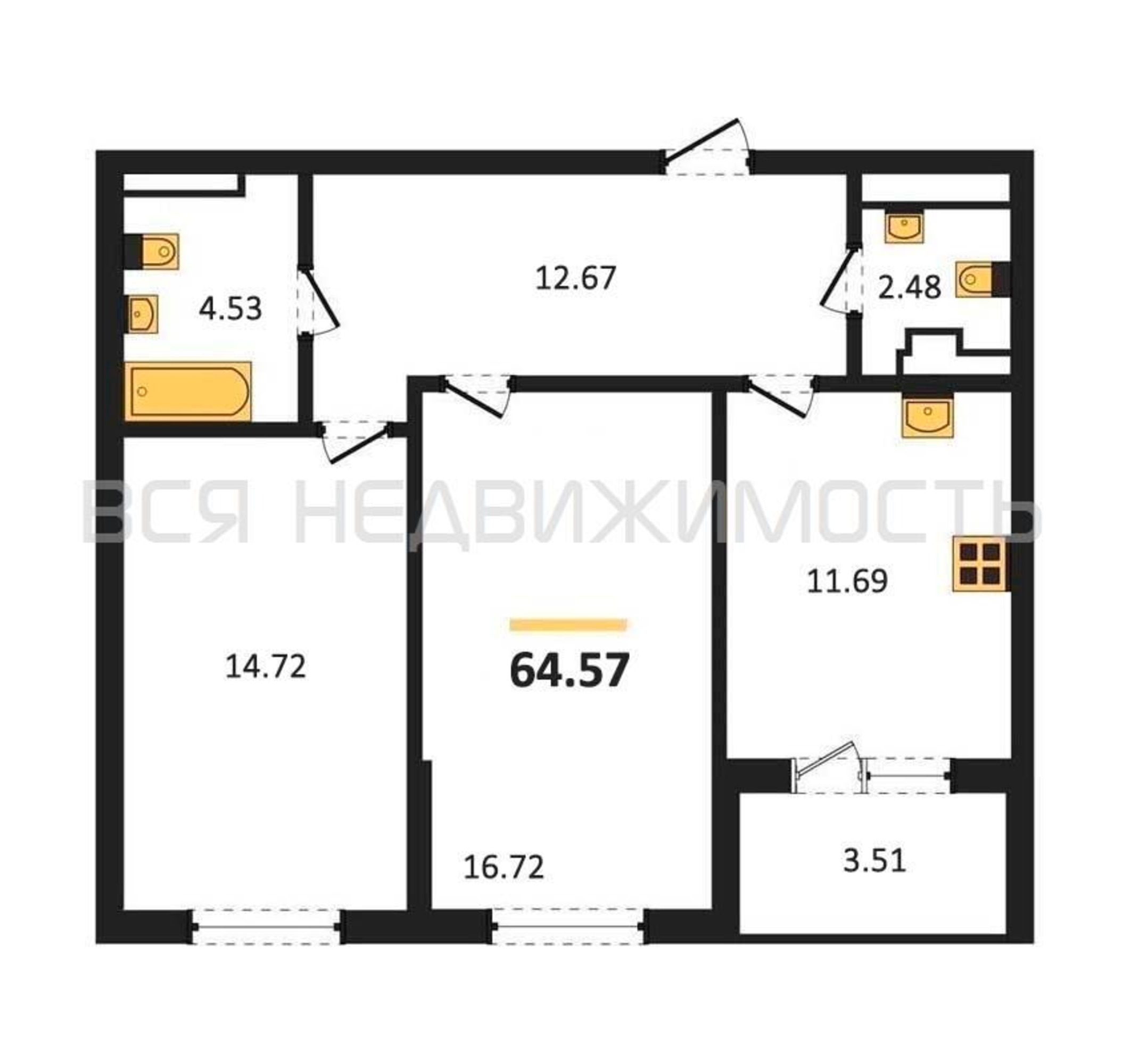 Строительная площадь64.57 м²