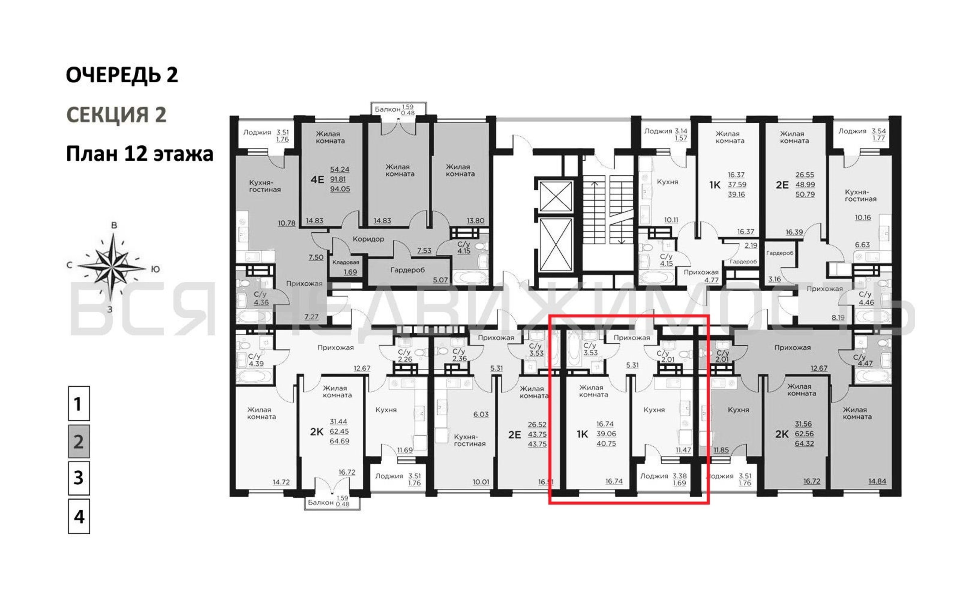 1-комнатная квартира, 40.75 м² 12/18 этаж ID объекта 100082870