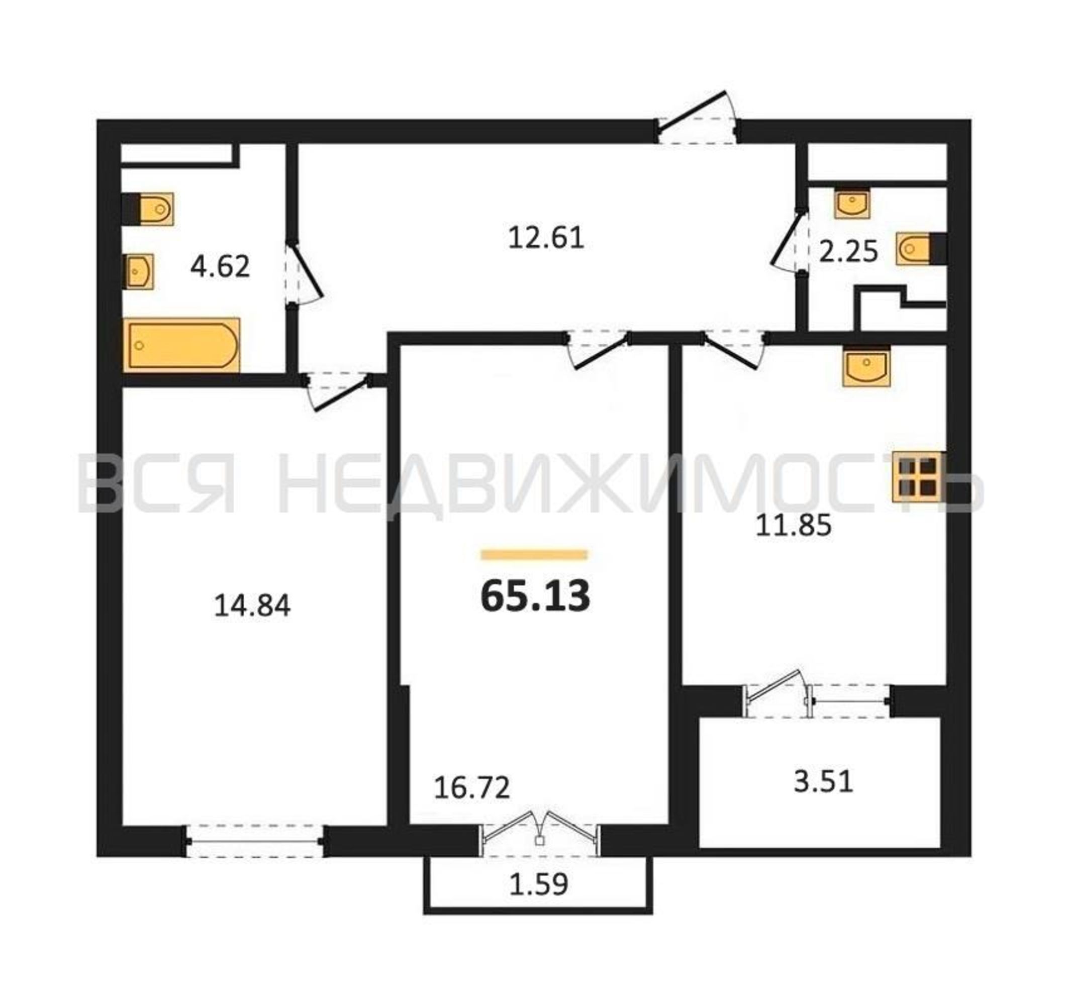 2-комнатная квартира, 65.13 м² 3/18 этаж ID объекта 100082907