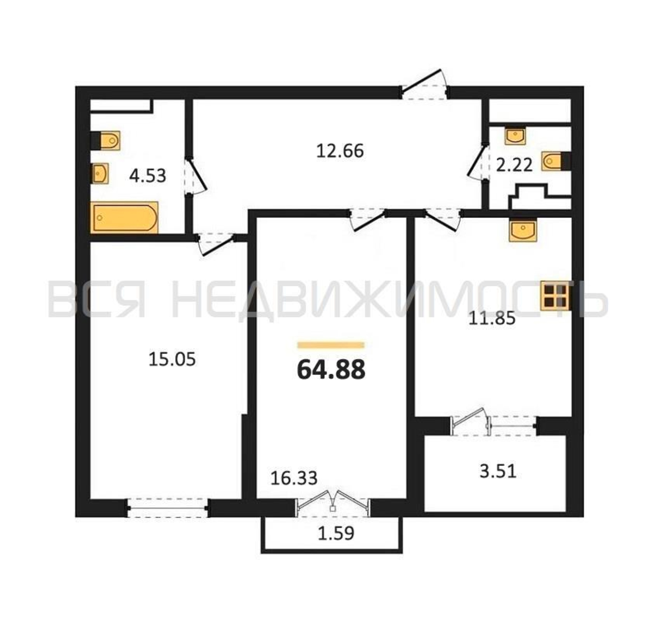 Строительная площадь64.88 м²