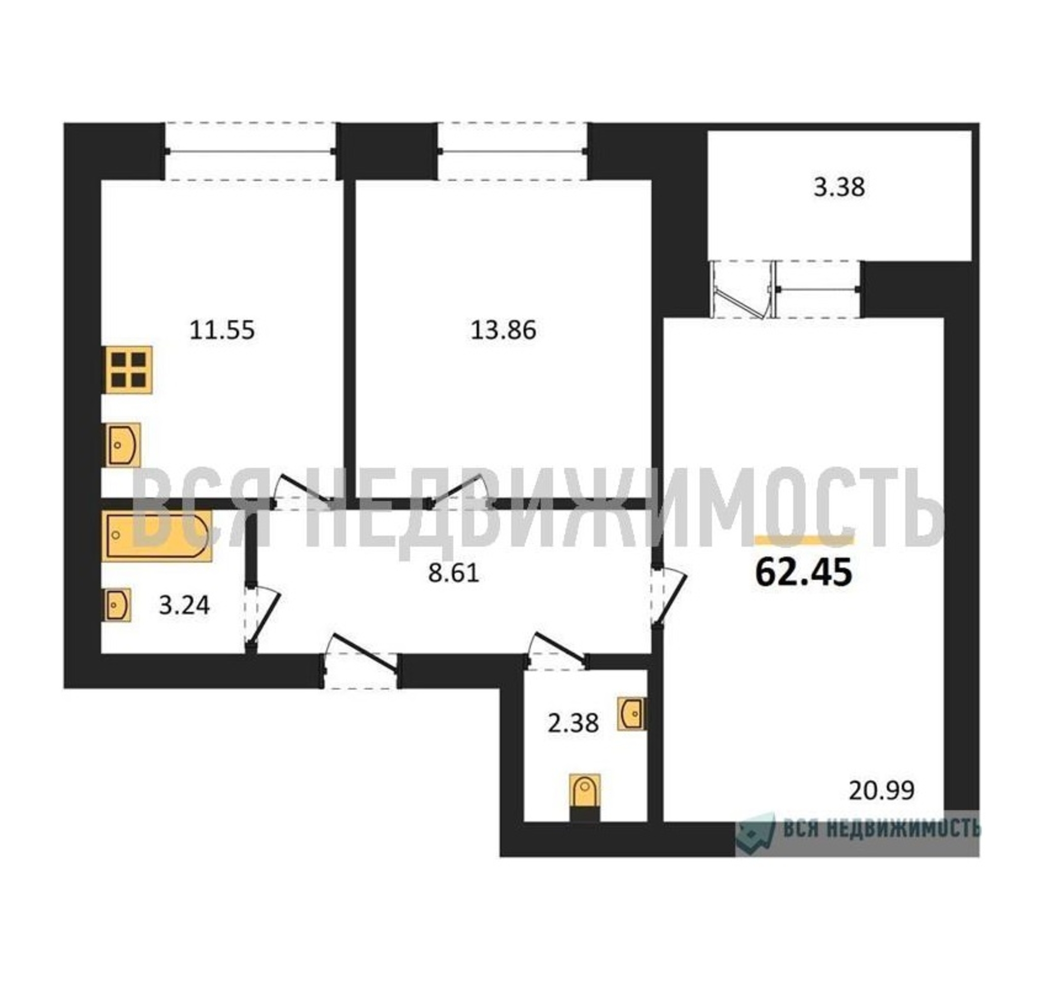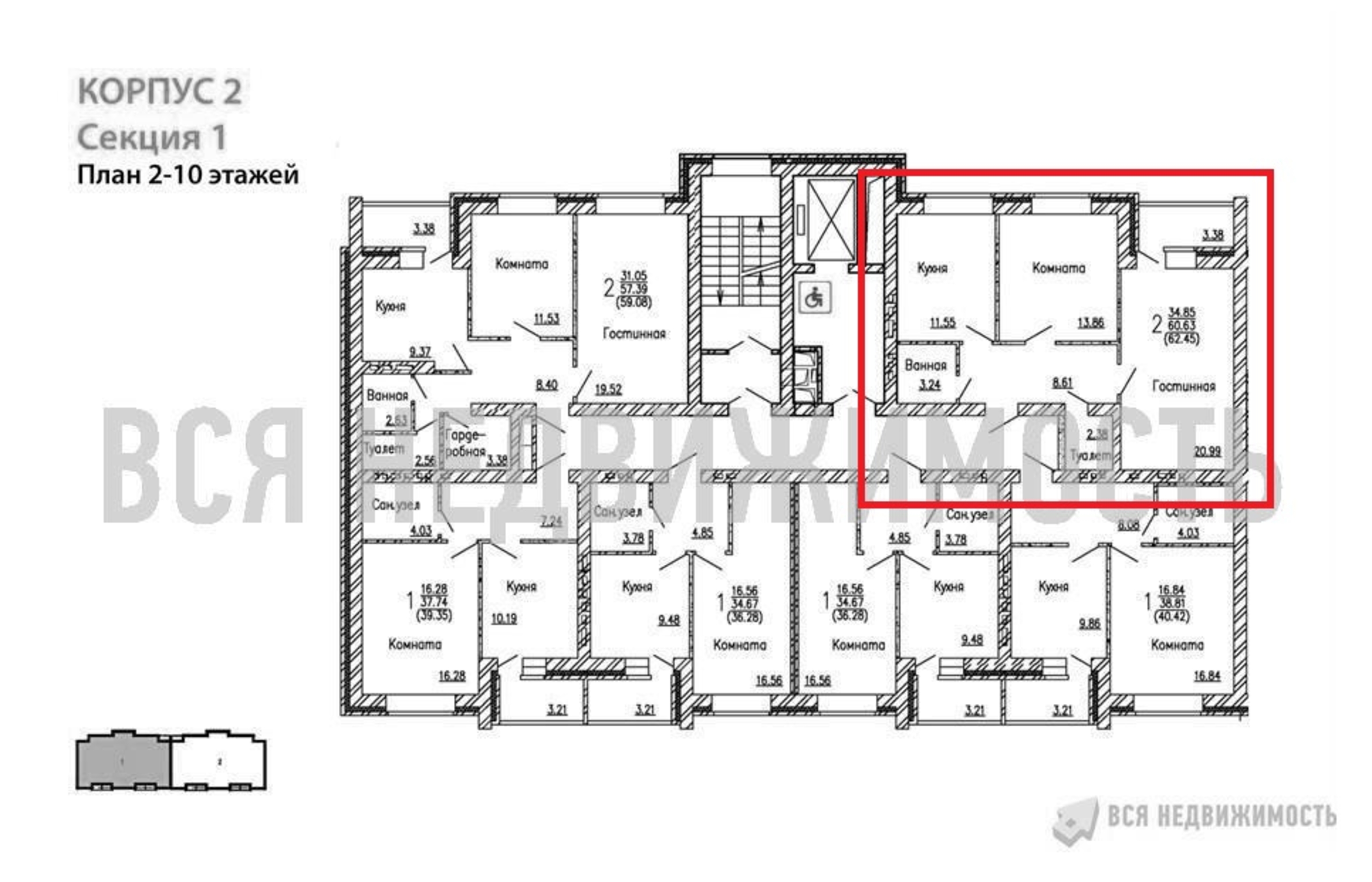 2-комнатная квартира, 62.45 м² 4/10 этаж ID объекта 100083329