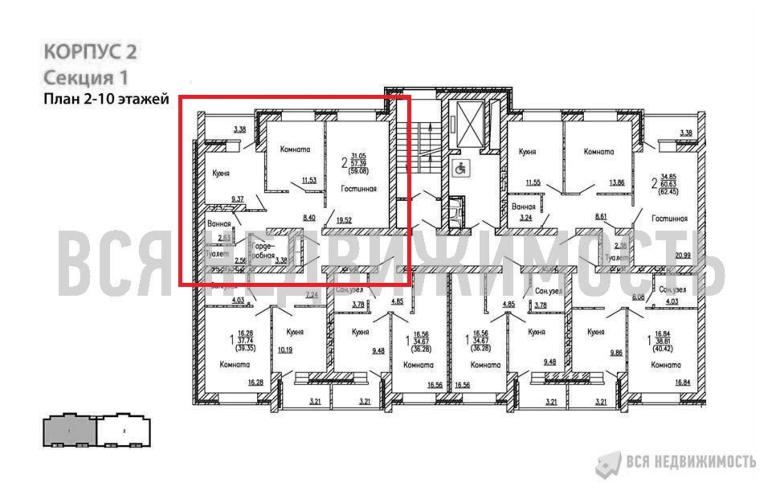 2-комнатная квартира, 59.08 м² 6/10 этаж ID объекта 100083346