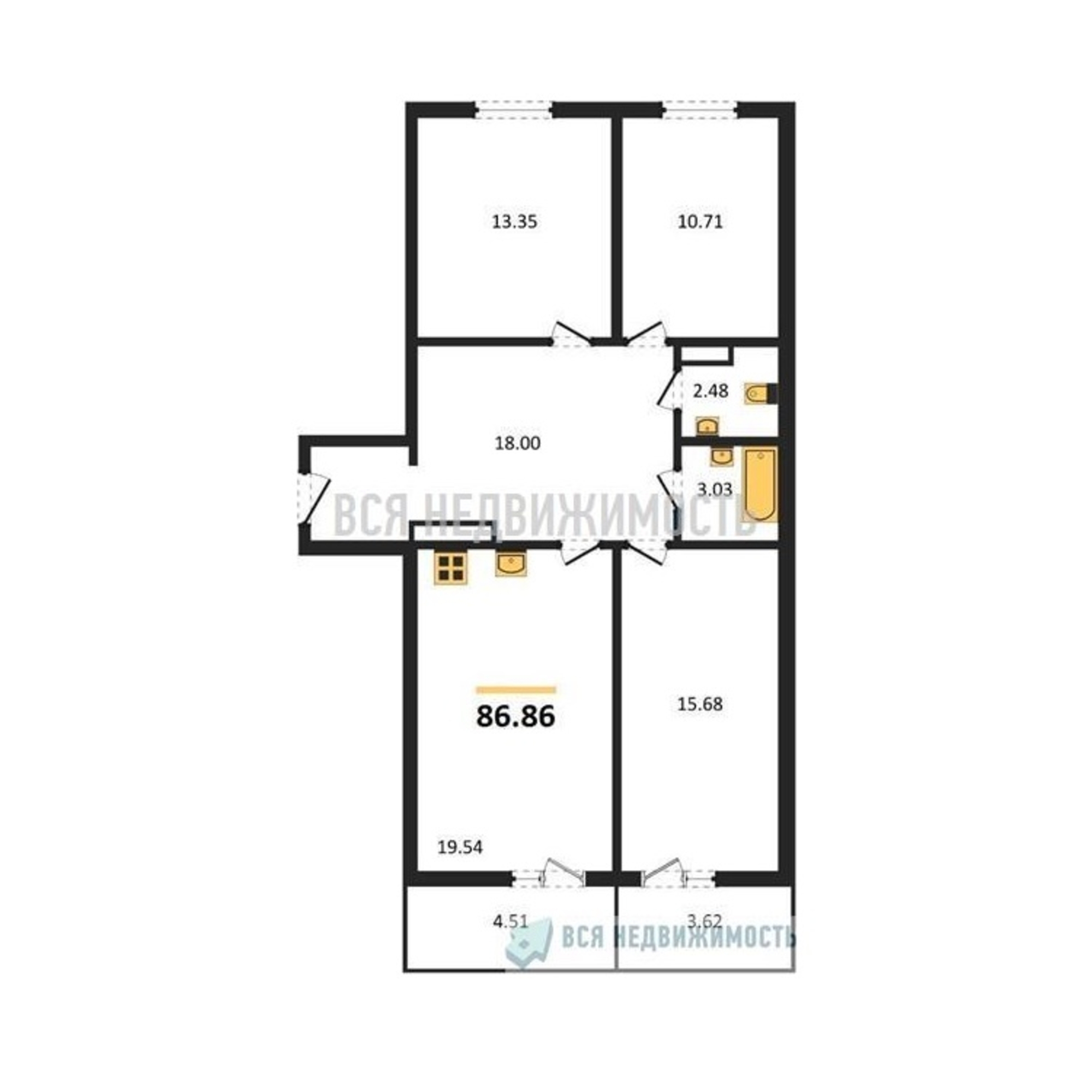Строительная площадь86.90 м²