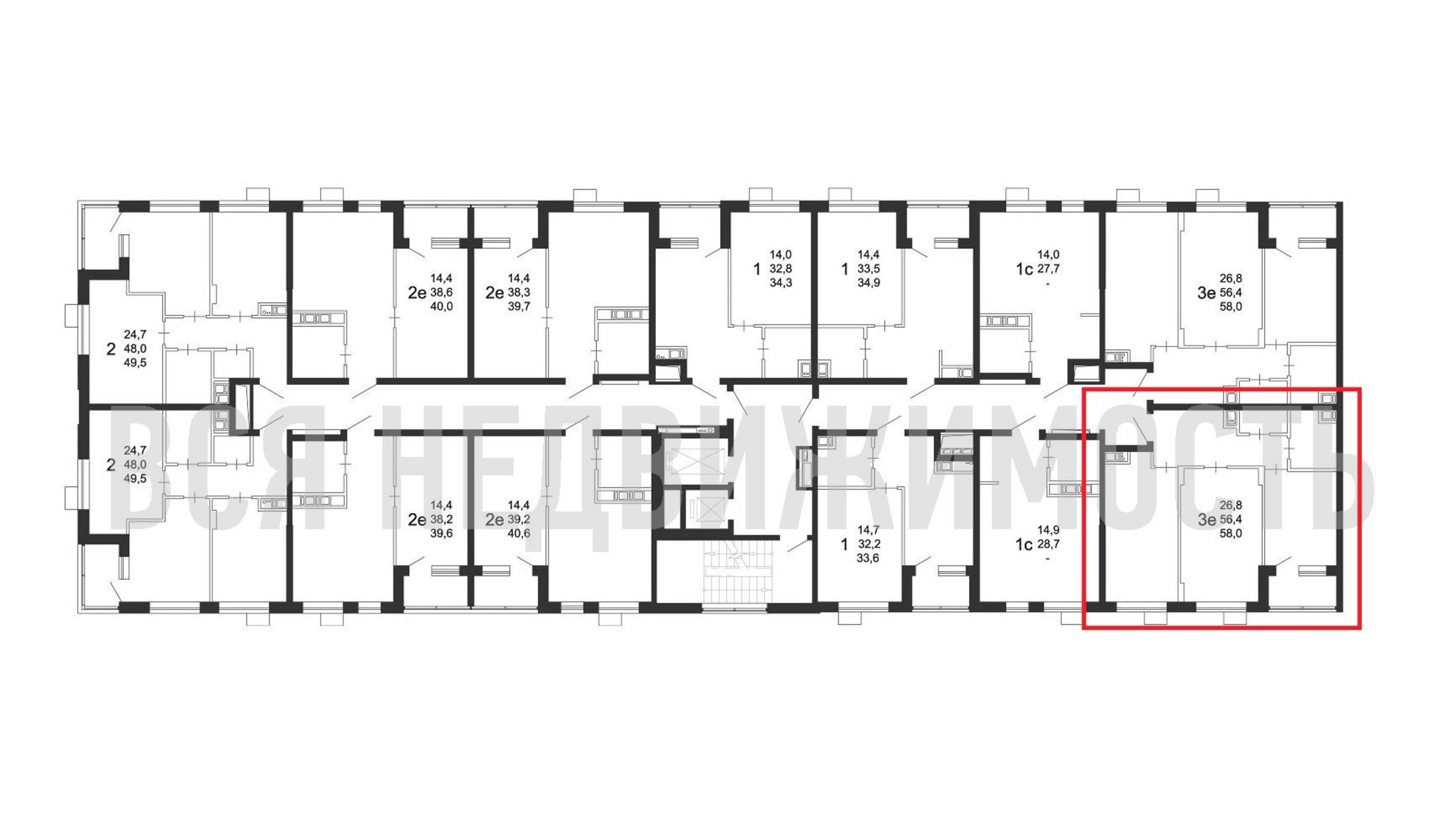 2-комнатная квартира, 58.00 м² 10/11 этаж ID объекта 100084406