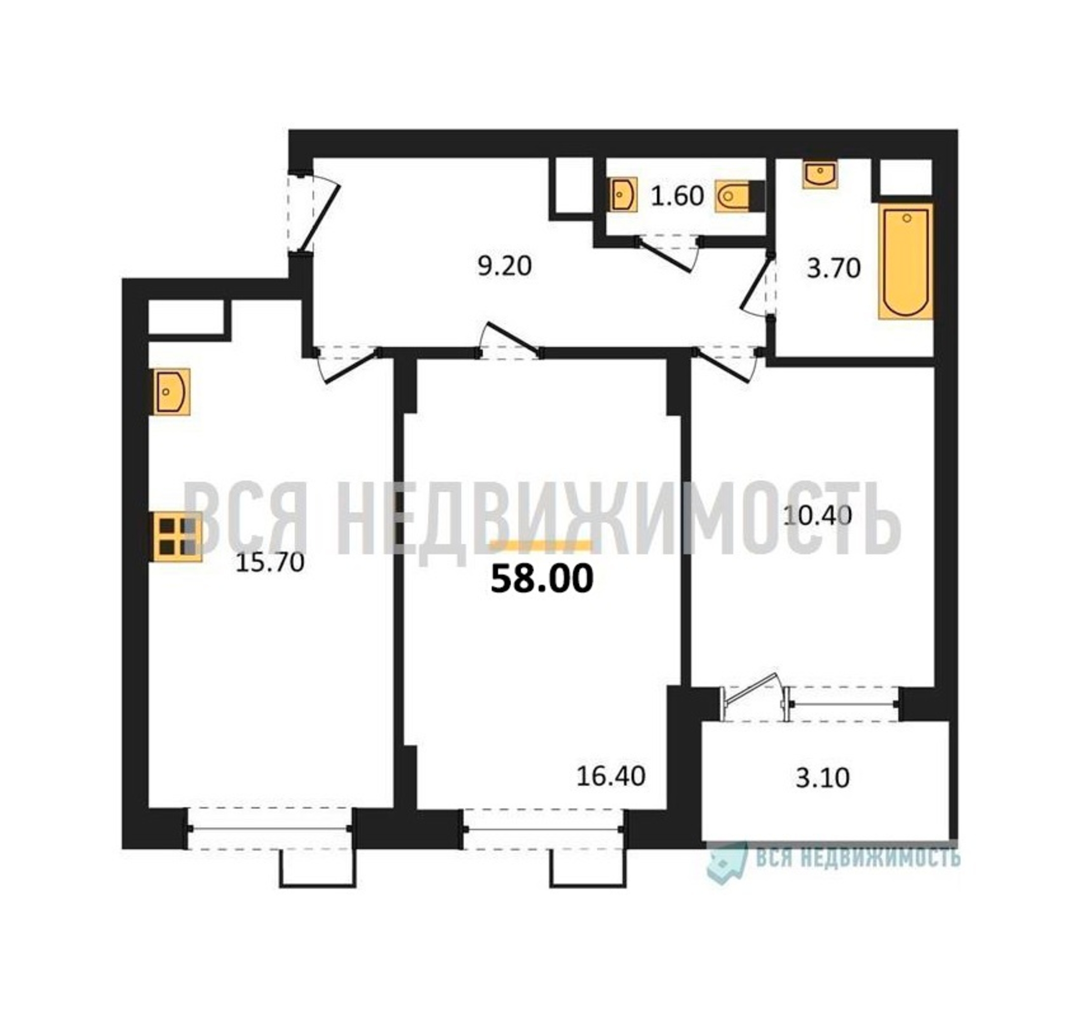 Строительная площадь58.00 м²