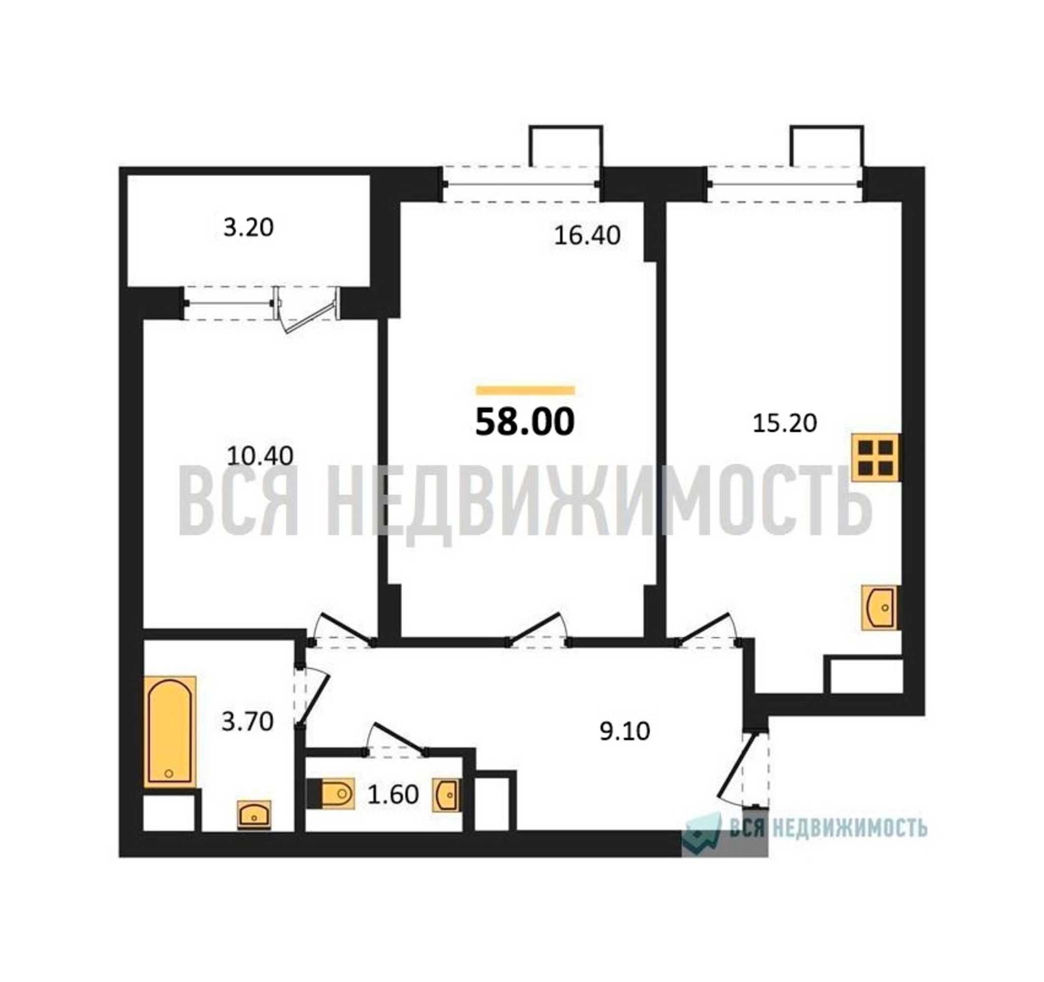 Строительная площадь58.00 м²