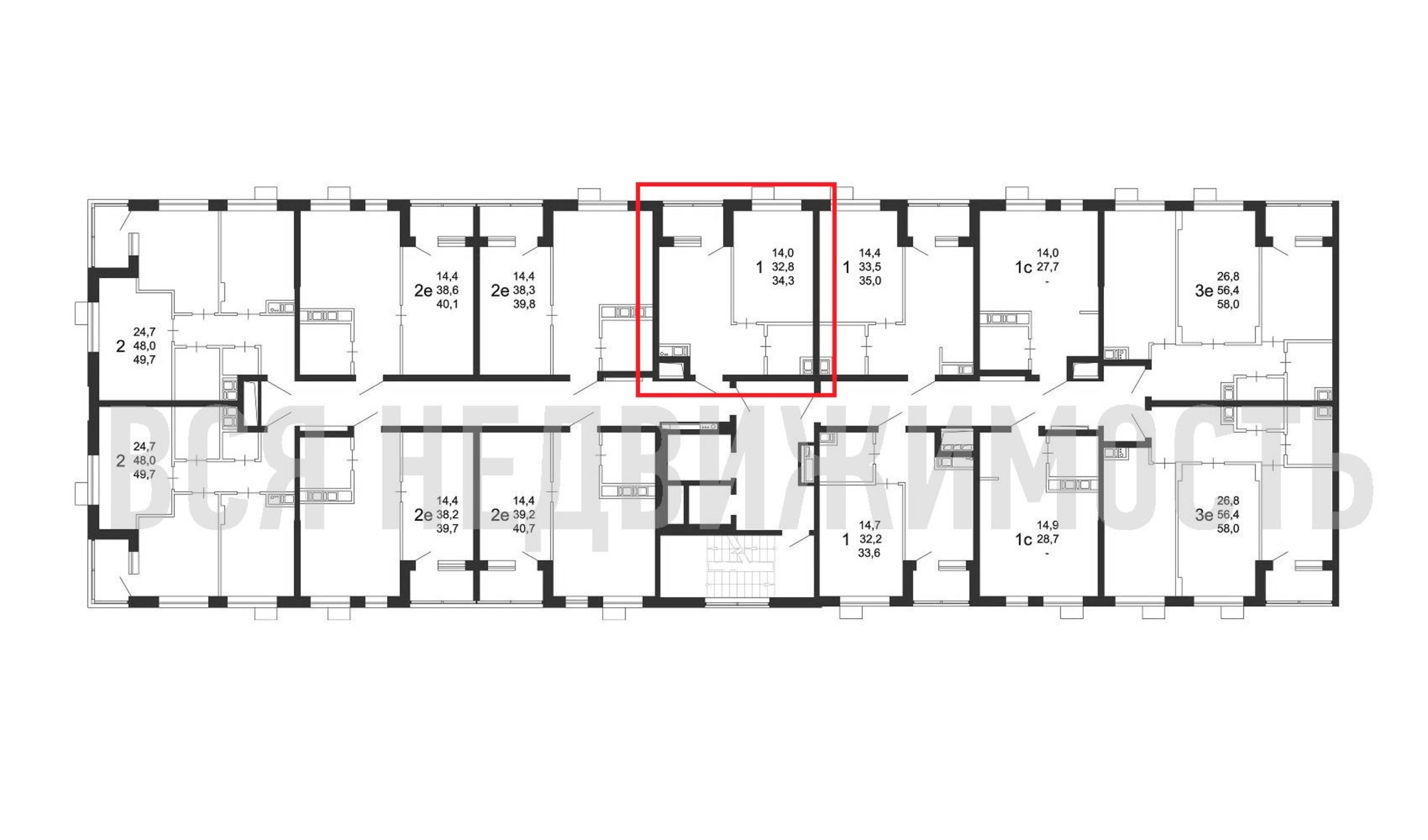 1-комнатная квартира, 34.30 м² 7/11 этаж ID объекта 100084452