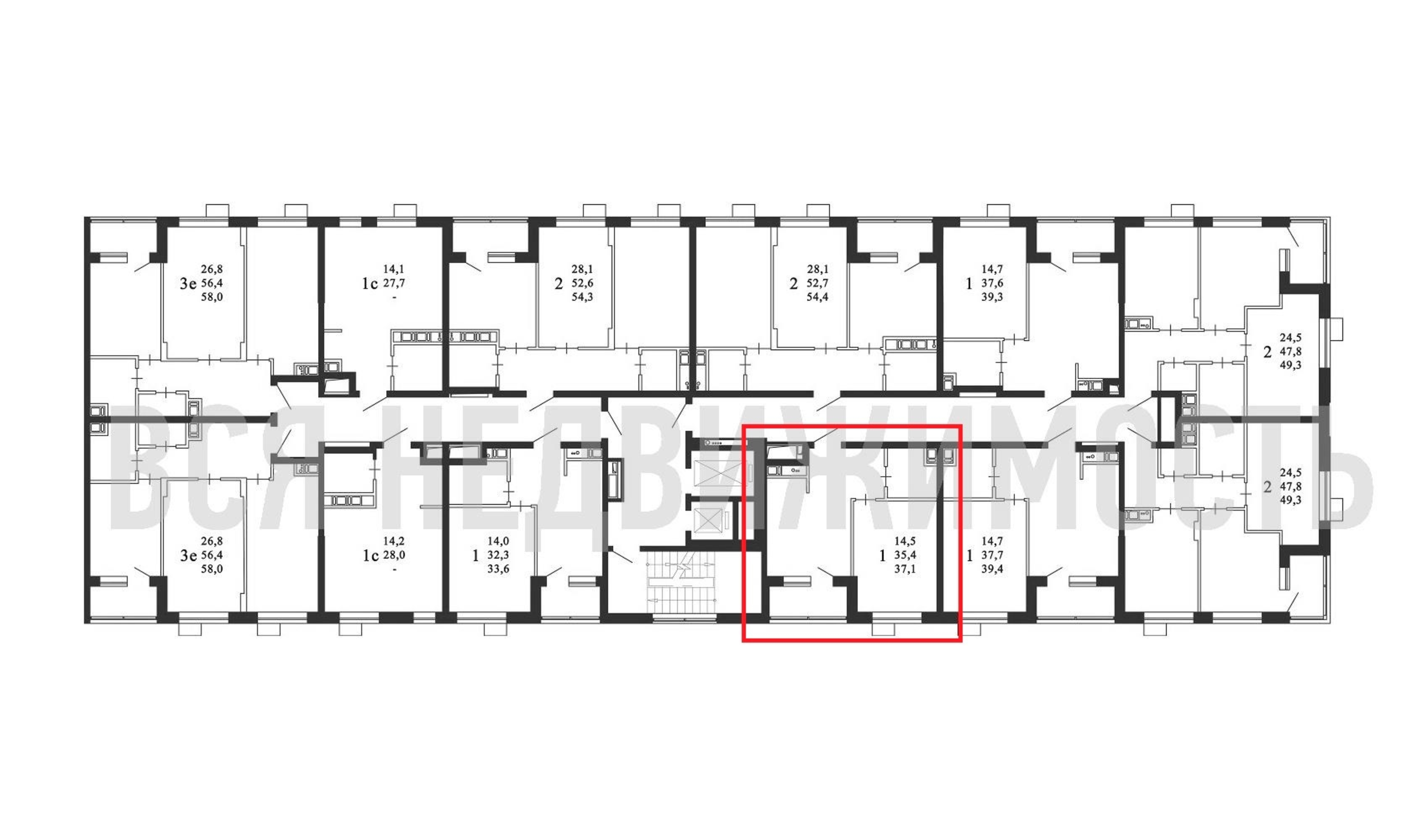 1-комнатная квартира, 37.10 м² 2/11 этаж ID объекта 100084539