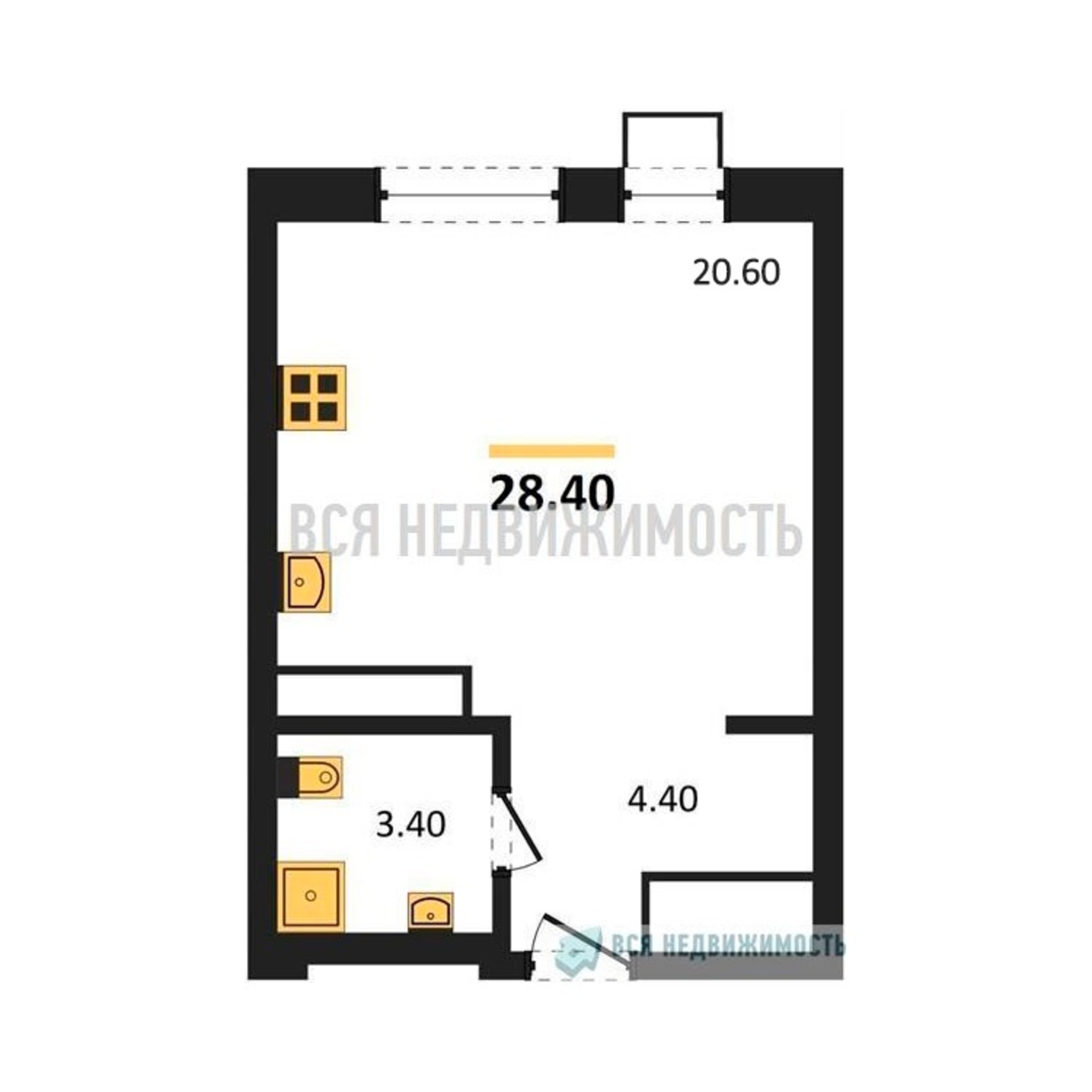 Квартиры-студии, 28.40 м² 3/12 этаж ID объекта 100084723