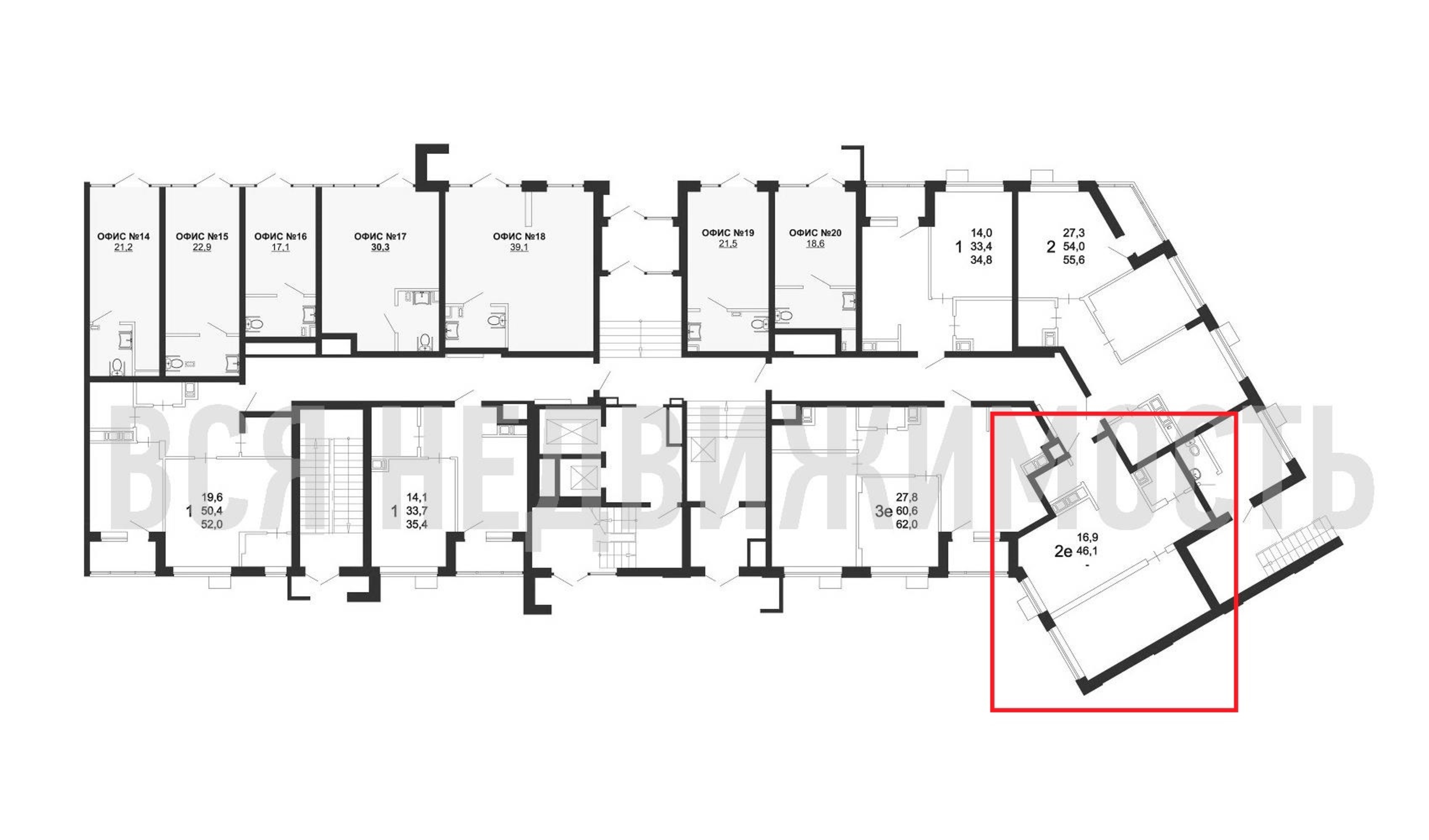 1-комнатная квартира, 46.10 м² 1/13 этаж ID объекта 100084755