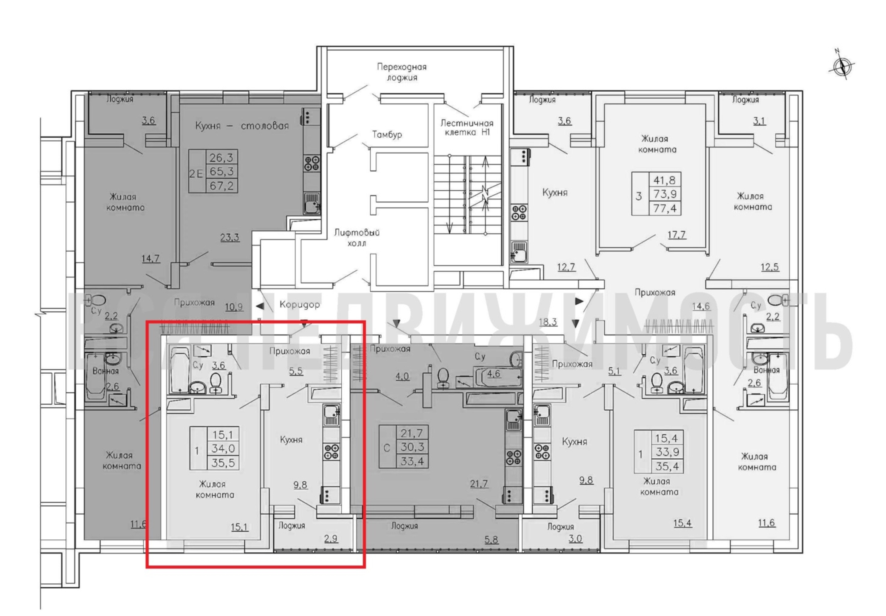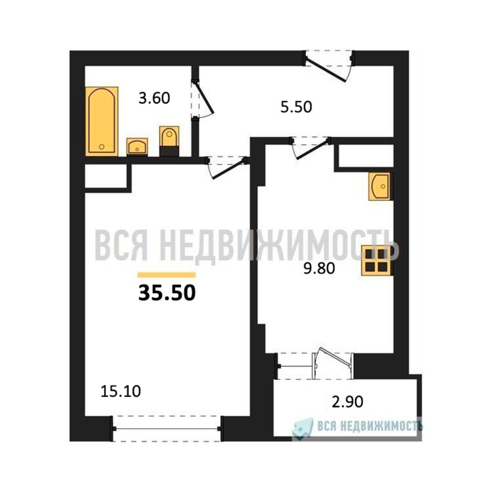 1-комнатная квартира, 35.50 м² 20/21 этаж ID объекта 100085326