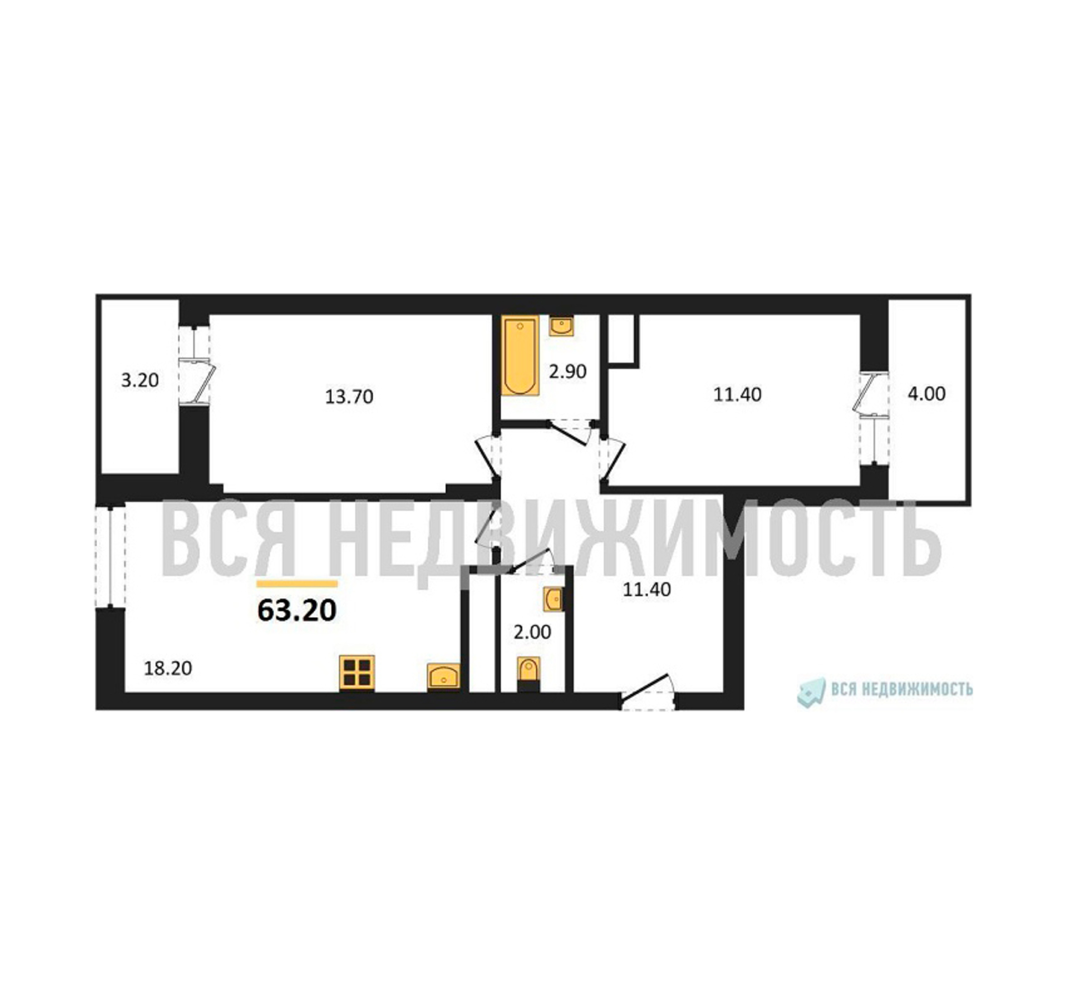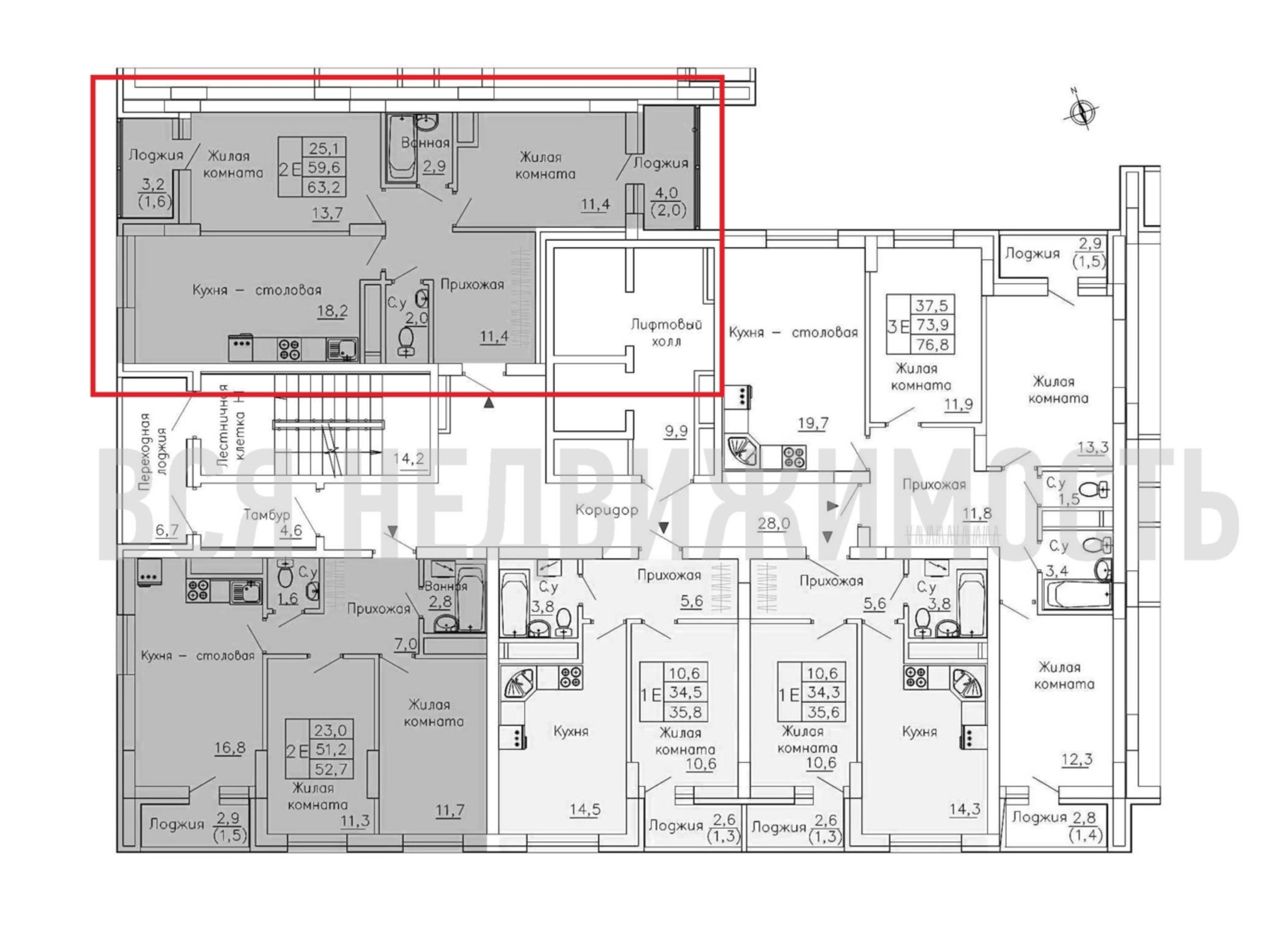 2-комнатная квартира, 63.20 м² 2/21 этаж ID объекта 100085347