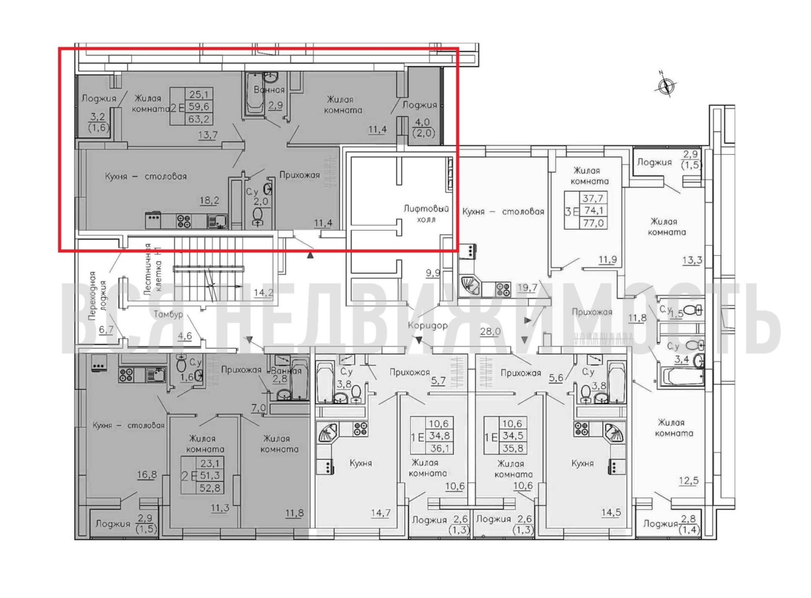 2-комнатная квартира, 63.20 м² 9/21 этаж ID объекта 100085434