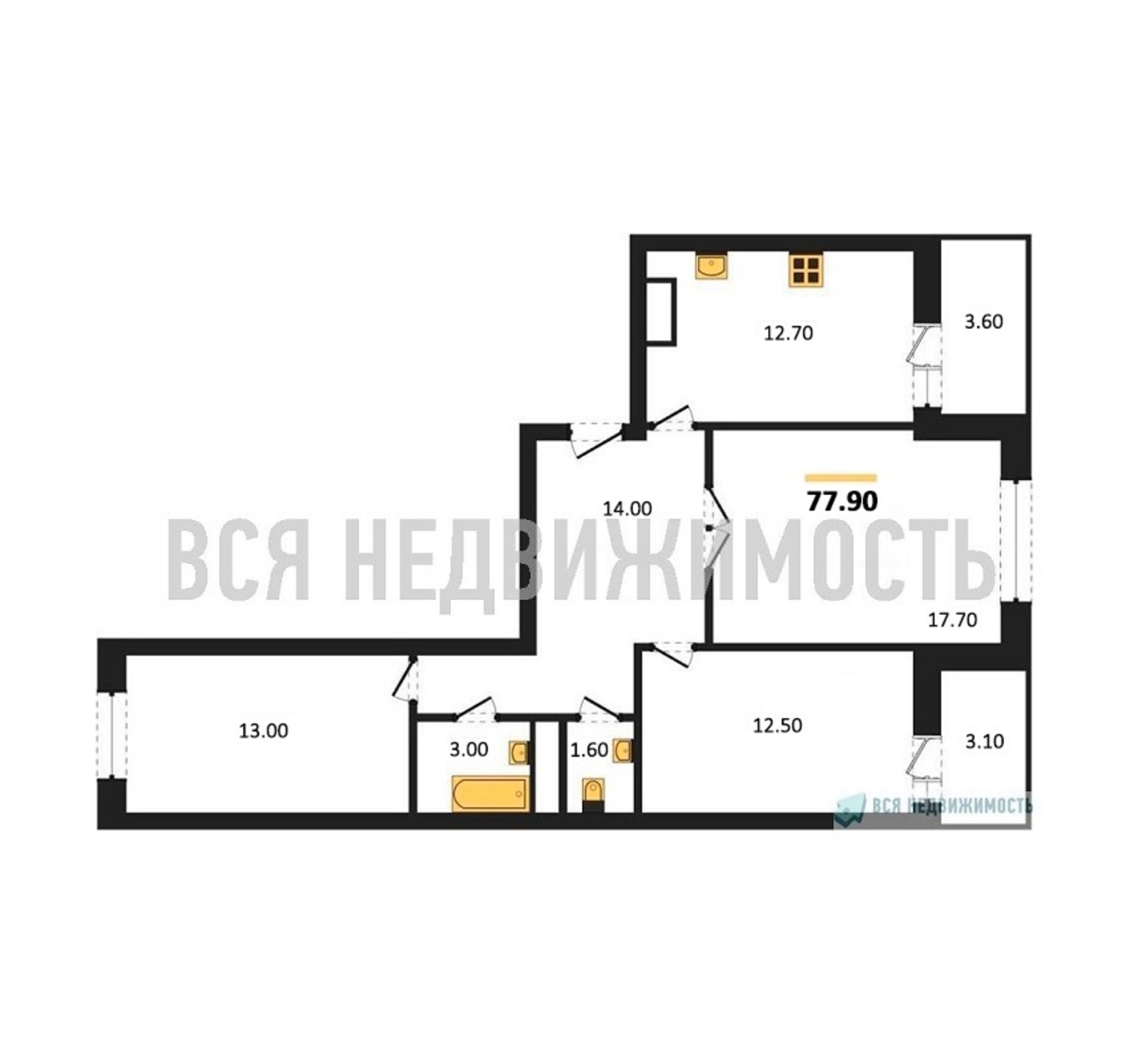 3-комнатная квартира, 77.90 м² 2/21 этаж ID объекта 100085448