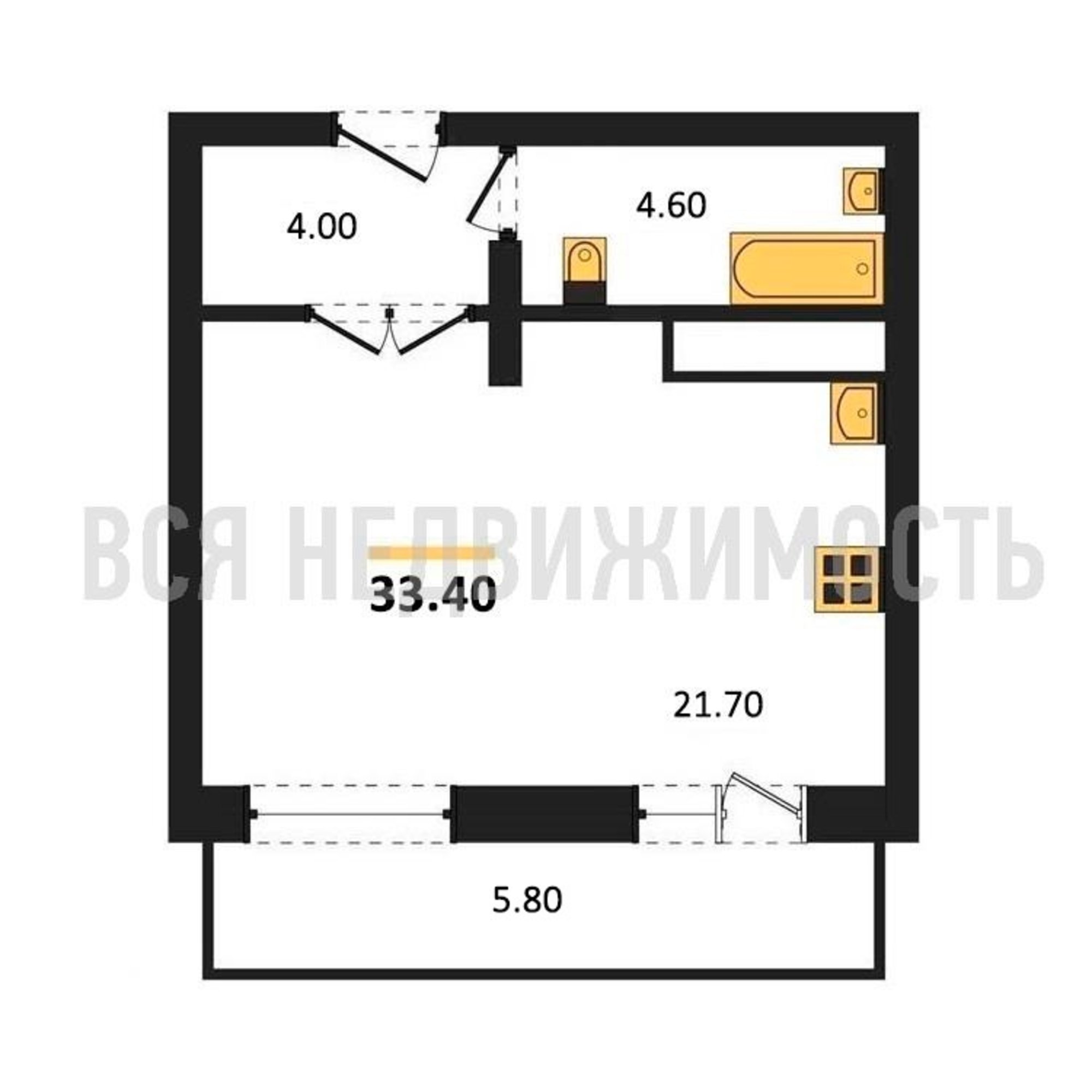 Квартиры-студии, 33.40 м² 8/21 этаж ID объекта 100085496