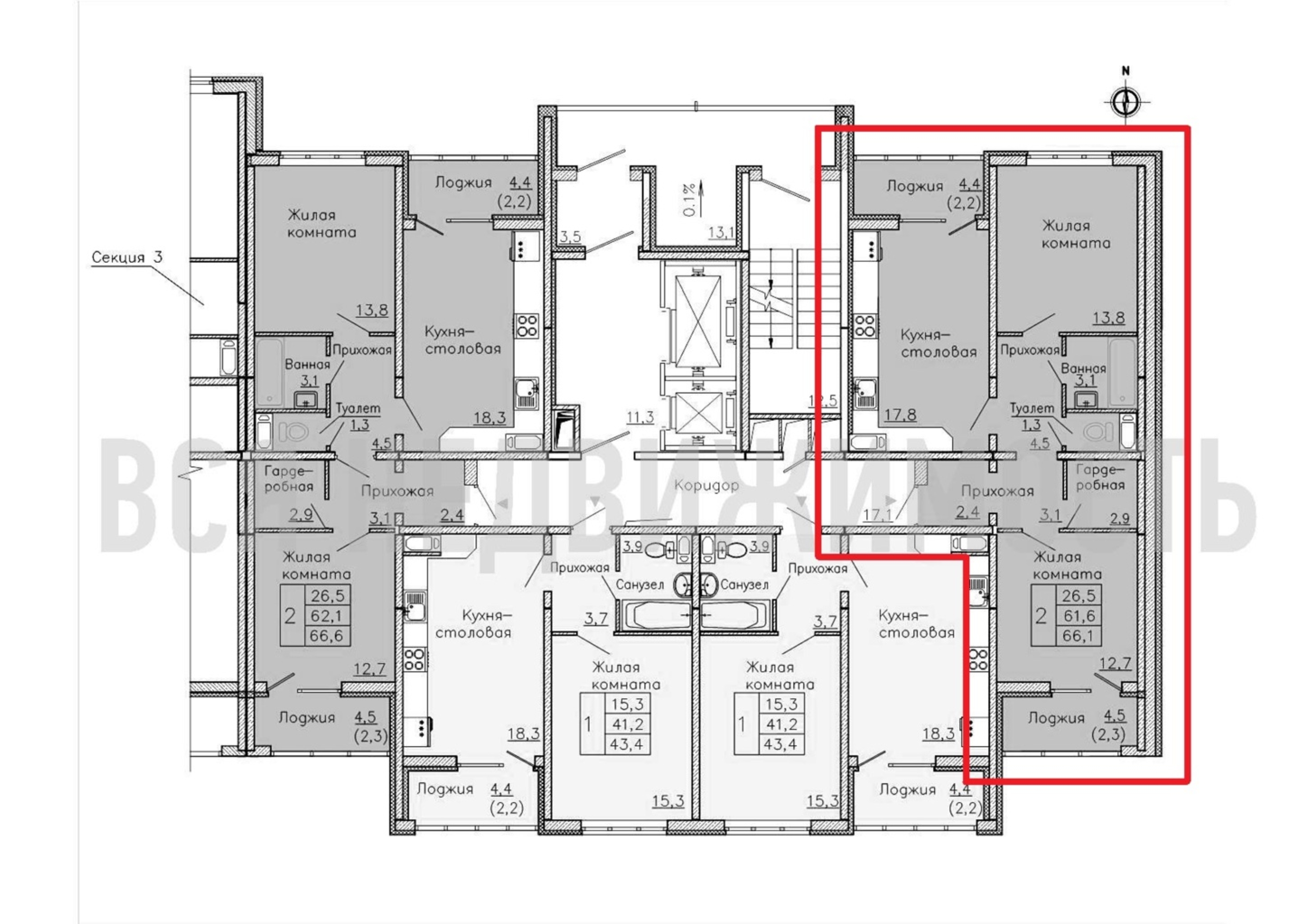 2-комнатная квартира, 66.10 м² 2/18 этаж ID объекта 100086537