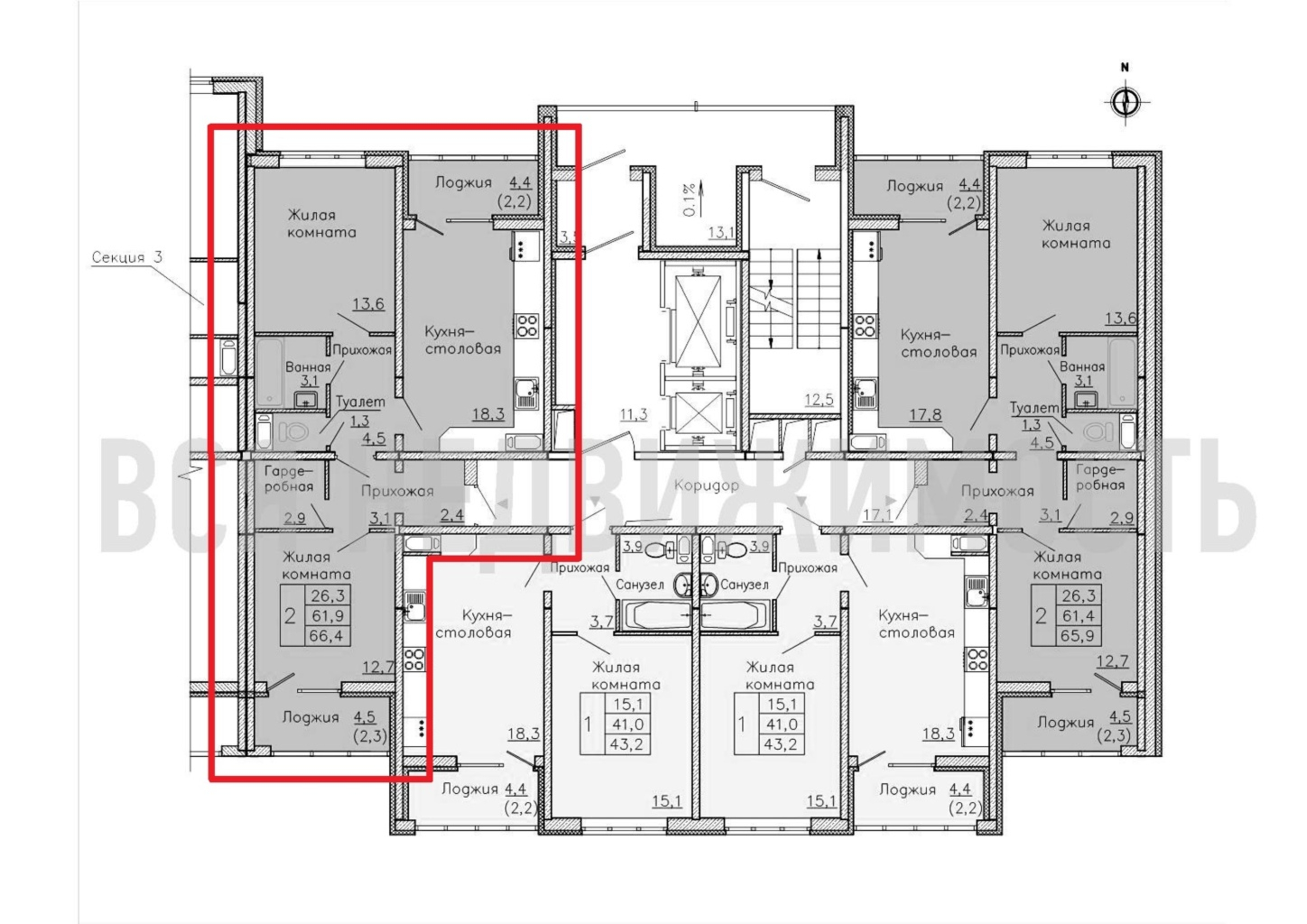 2-комнатная квартира, 66.40 м² 18/18 этаж ID объекта 100086604