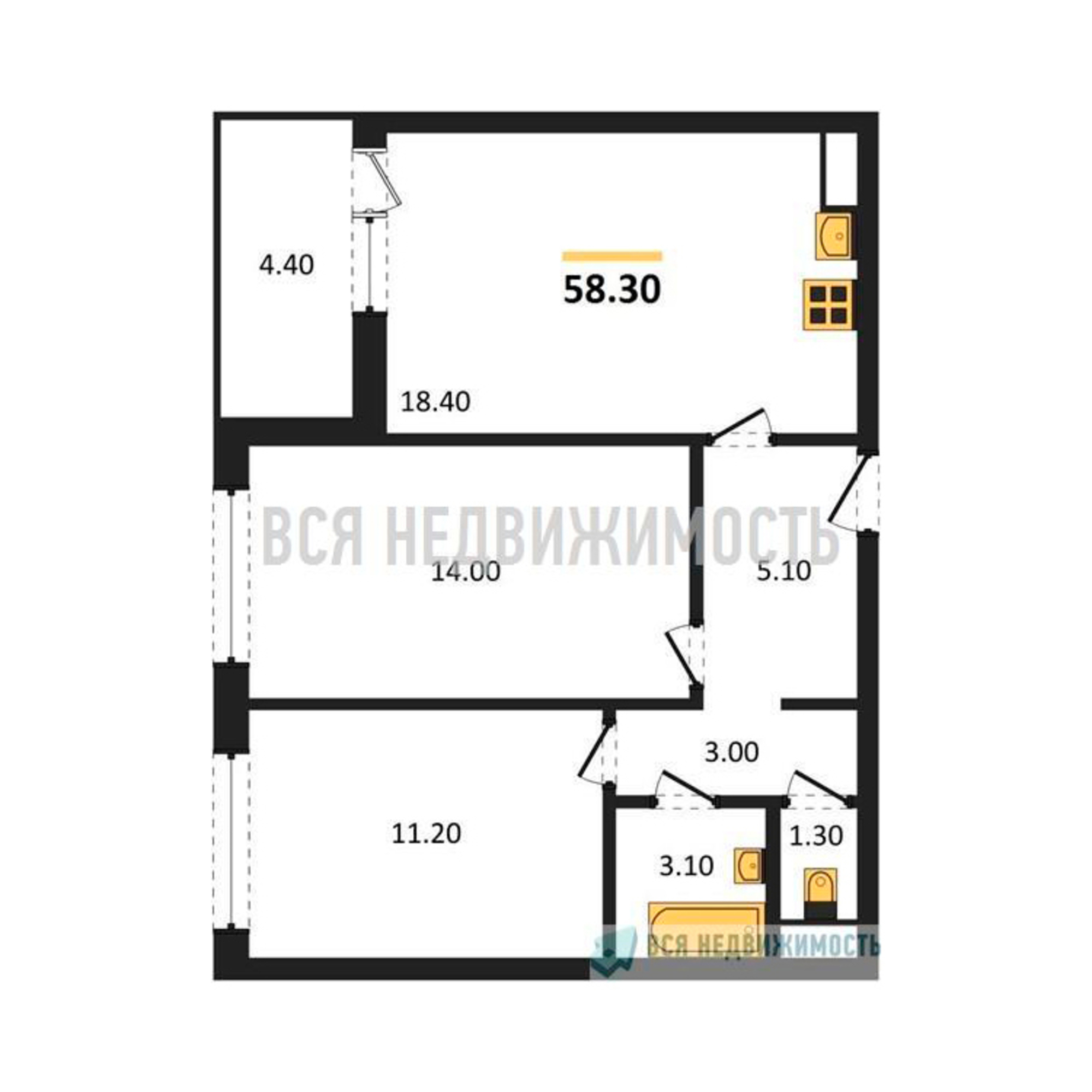 2-комнатная квартира, 58.30 м² 17/18 этаж ID объекта 100086643