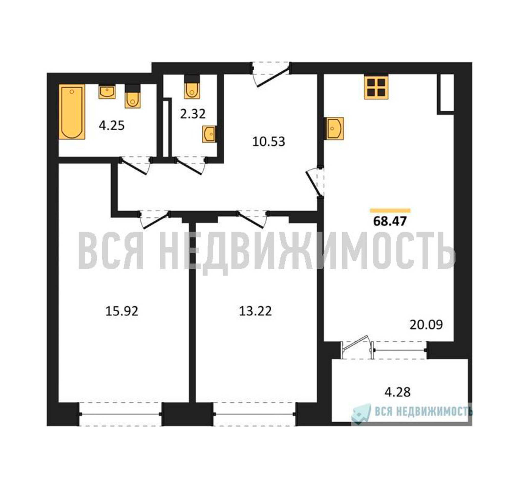 2-комнатная квартира, 68.47 м² 7/18 этаж ID объекта 100086770