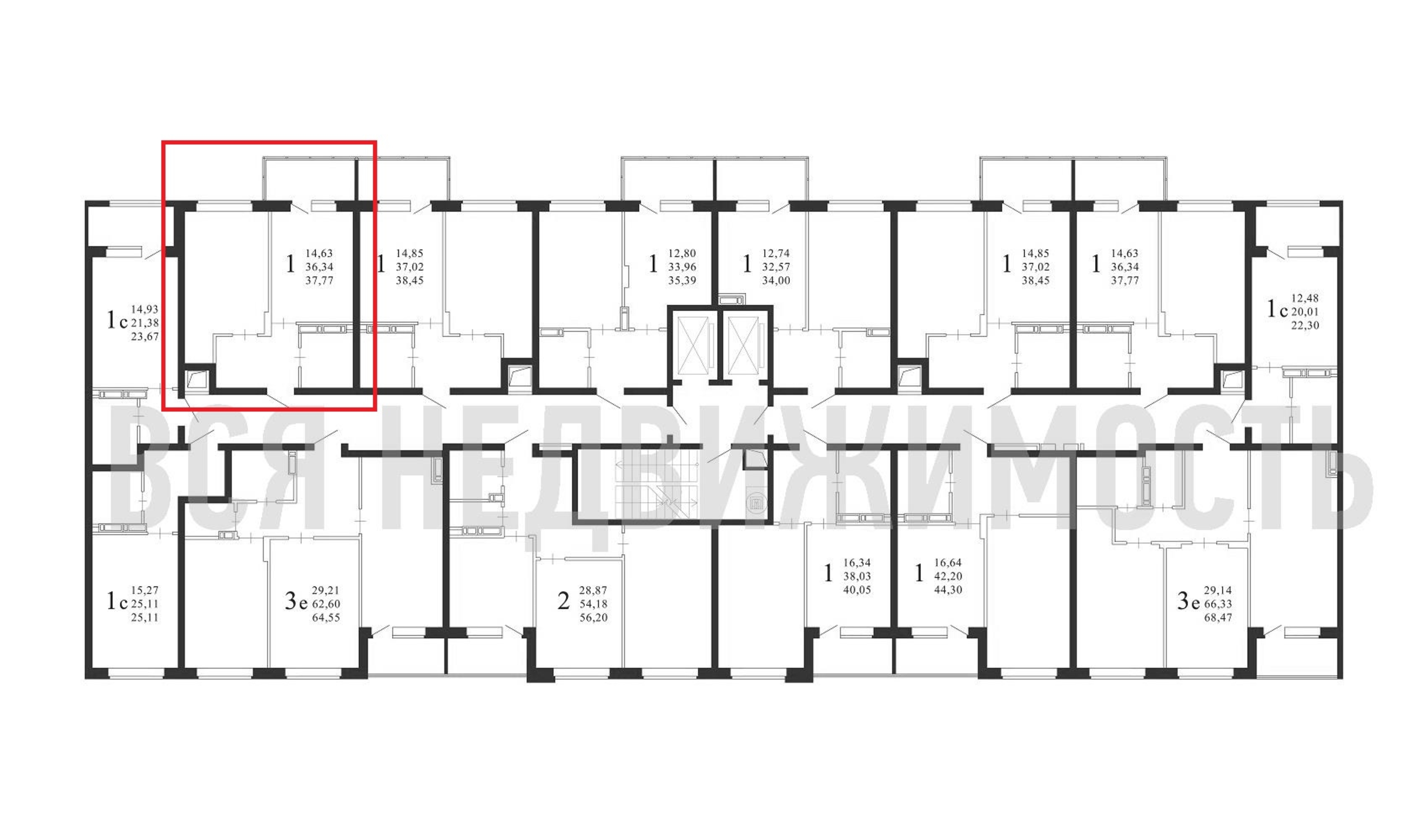 1-комнатная квартира, 37.77 м² 9/18 этаж ID объекта 100086792