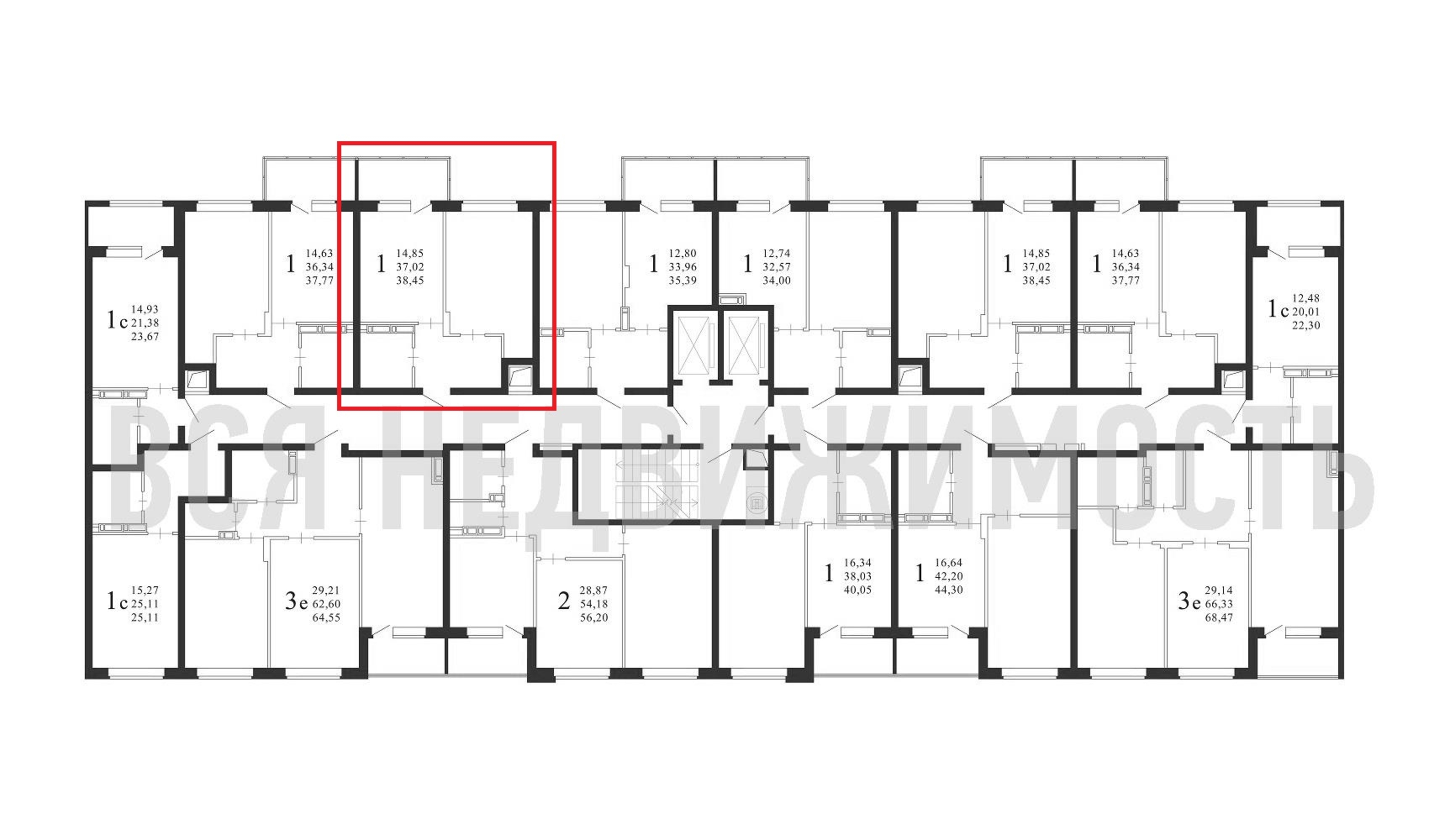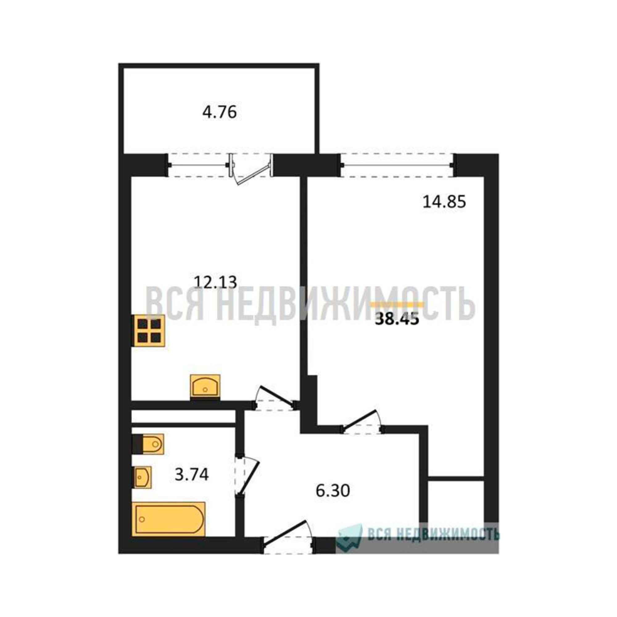 1-комнатная квартира, 38.45 м² 12/18 этаж ID объекта 100086808